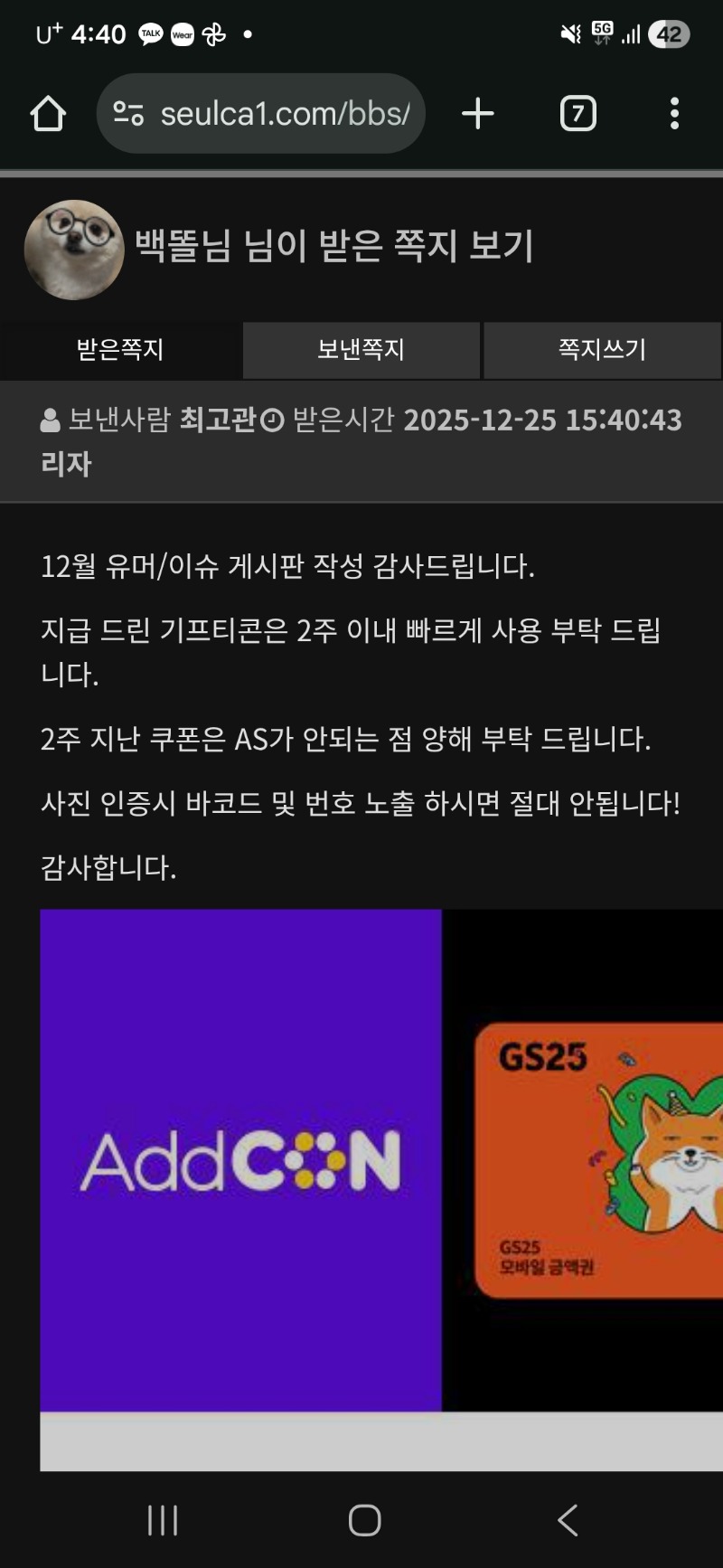 모두냥쿱올릴때.. 백똘님 5 0 0 16:41:23 *기프티콘 바코드 노출 주의* <- Gs감사합니당 0 0 https://seulca1.com/bbs/board.php?bo_table=free&wr_id=3416168 Author 2 1 Lv.9 백똘님 9 4,529,666 (13%) 백똘님님 보유 포인트 : P 63,133 12.25 패딩쥑이네.. 12.25 교회가욕먹는이유 12.25 야식좋아하는 우리를위해 +5 12.25 모두냥쿱올릴때.. 12.25 AI로살린 어릴적사진