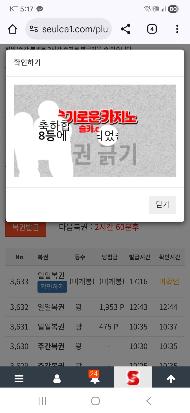 일복 8등 ~ 지킴이 6 1 0 17:32:20 *기프티콘 바코드 노출 주의* <- 감사합니다 1 0 https://seulca1.com/bbs/board.php?bo_table=free&wr_id=3416406 Author 9 4 Lv.18 지킴이 18 132,000,918 (53%) 지킴이님 보유 포인트 : P 5,967,466 +1 12.25 맛저 하세요 ~~ +6 12.25 일복 8등 ~ +1 12.25 점심복권은..나가리~~ 12.25 맛점 하세요 12.25 출첵 인증
