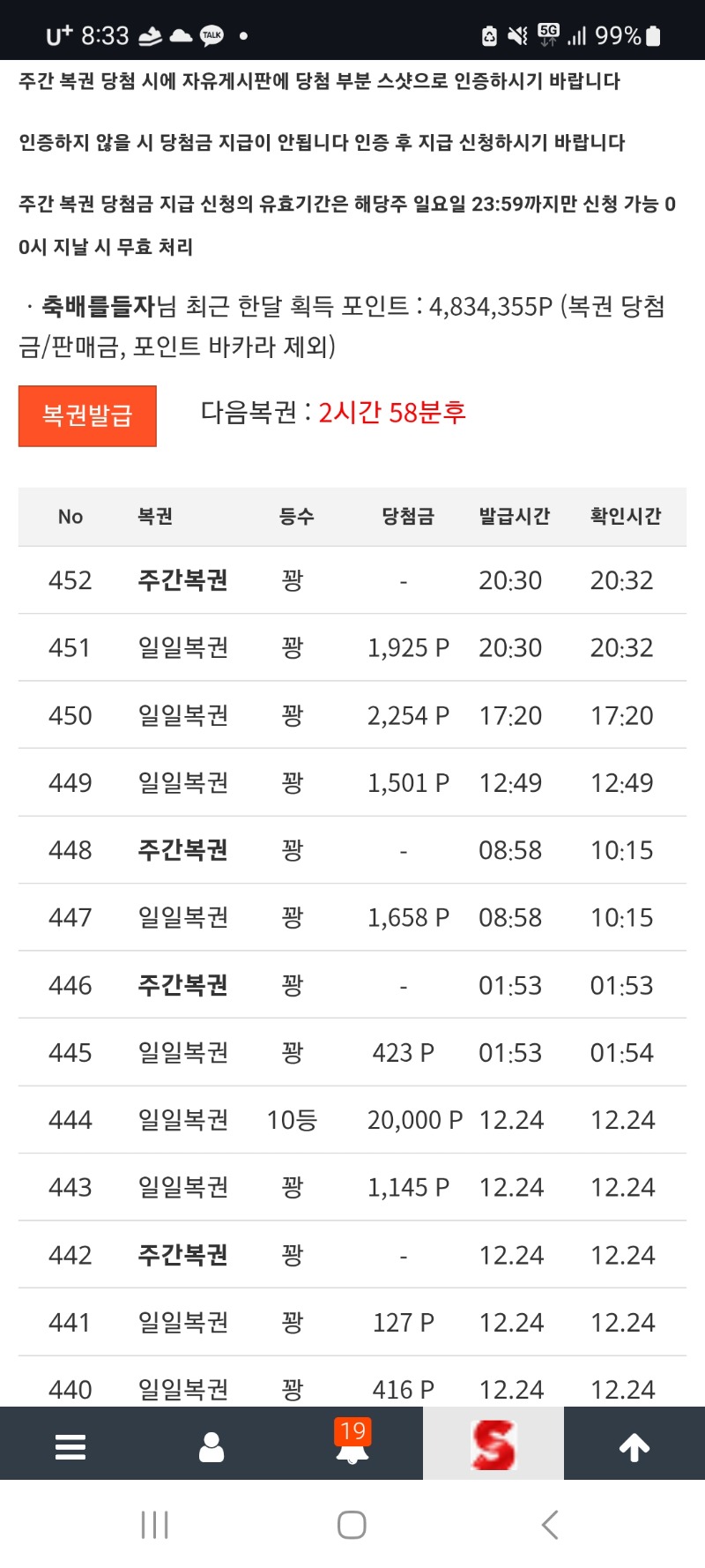 쌍복 축배를들자 0 0 0 20:33:43 *기프티콘 바코드 노출 주의* <- 돌겠네 ㅜㅜ 0 0 https://seulca1.com/bbs/board.php?bo_table=free&wr_id=3417143 Author 1 0 Lv.9 축배를들자 9 7,285,192 (82%) 축배를들자님 보유 포인트 : P 1,684,160 12.25 쌍복 12.25 맛저하세요 +1 12.25 형난참여 +1 12.25 벌써 맛저시간 +1 12.25 맛저하시고 즐거운 시간 보내세요