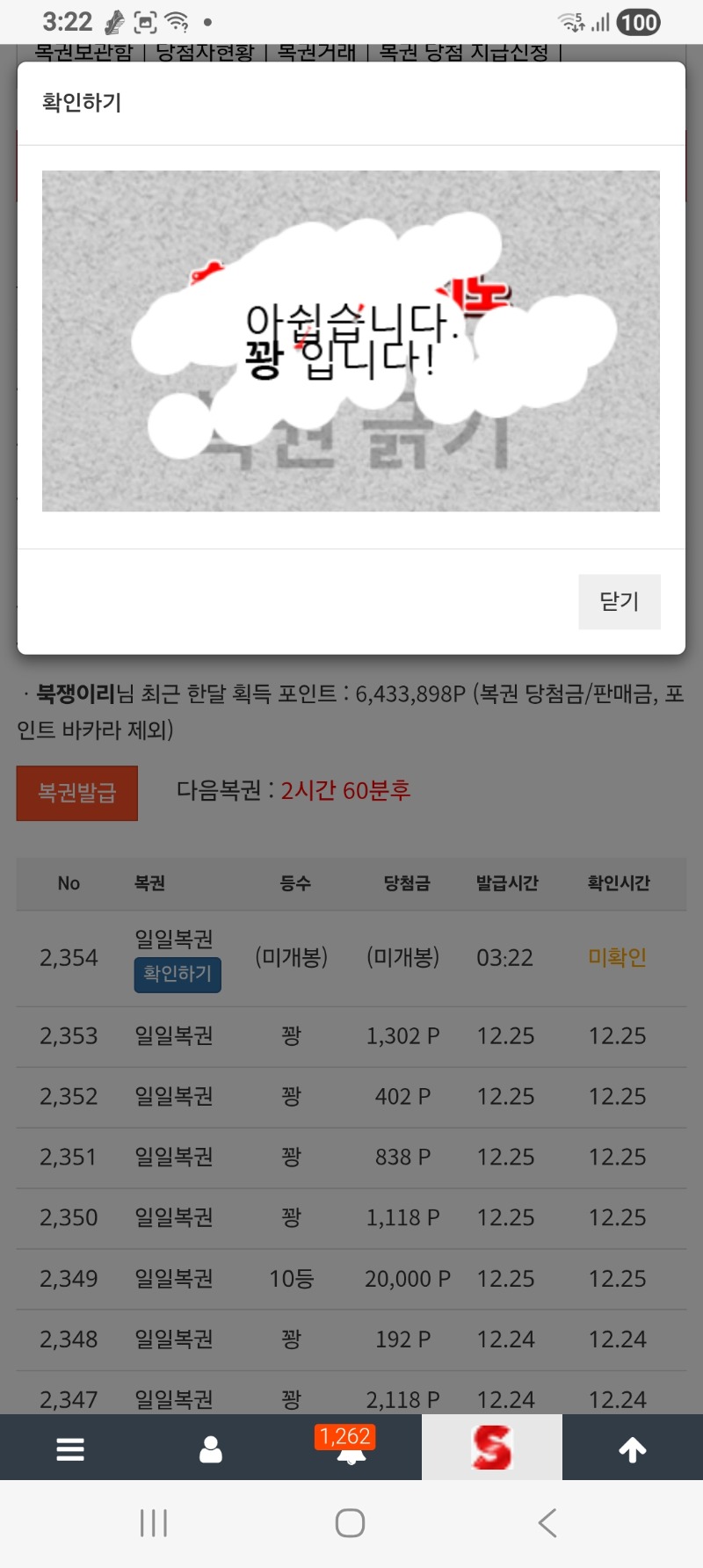 모닝복권 북쟁이리 0 0 0 03:23:20 *기프티콘 바코드 노출 주의* <- 꽝. 0 0 https://seulca1.com/bbs/board.php?bo_table=free&wr_id=3417986 Author 4 3 Lv.14 북쟁이리 14 23,390,340 (5%) 북쟁이리님 보유 포인트 : P 1,006,492 12.26 모닝복권 12.25 형난 선배팀 승 ㅅㅅㅅㅅ +1 12.25 시안.형난 이펜트 참여완료 +1 12.25 펭아,고마워.ㅎ +2 12.25 맛저하세요