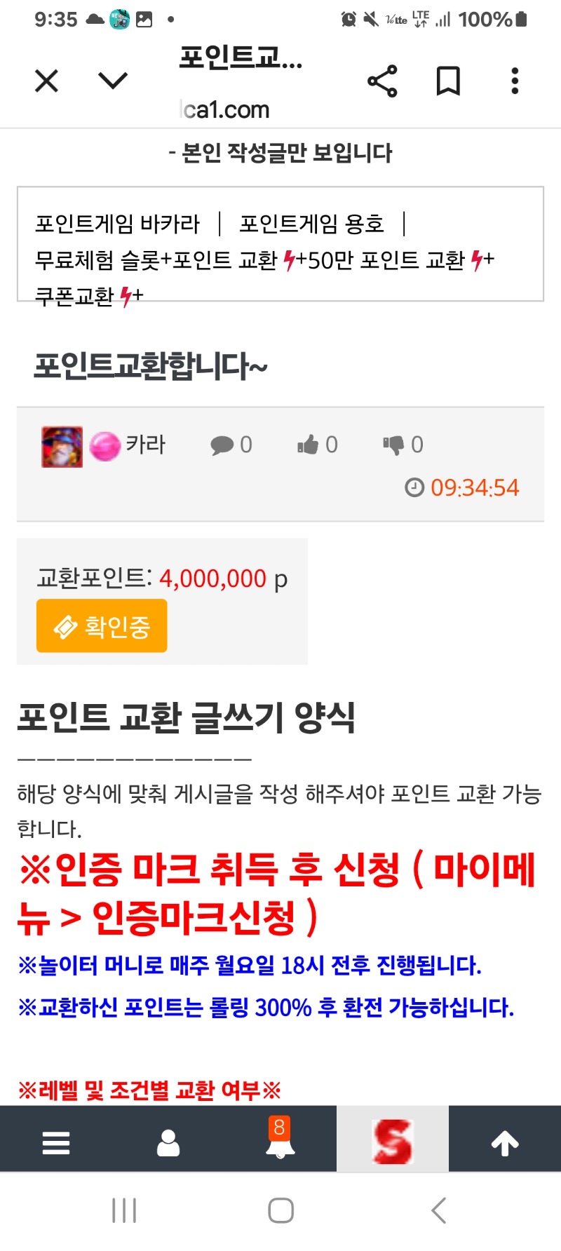 포인트교환~~ 카라 10 0 0 09:36:28 *기프티콘 바코드 노출 주의* <- 생각같아선 700만포교하고픈데 혹시라도 뎅당할까봐 미리 신청하네요 ㅠ 0 0 https://seulca1.com/bbs/board.php?bo_table=free&wr_id=3418296 Author 13 3 Lv.17 카라 17 92,379,467 (74%) 카라님 보유 포인트 : P 30,722 +10 12.26 포인트교환~~ +1 12.26 [비밀글] 포인트교환합니다~ +4 12.26 문카룰렛~~ +2 12.26 레부 룰렛~~ +6 12.26 일보기3등당첨~~