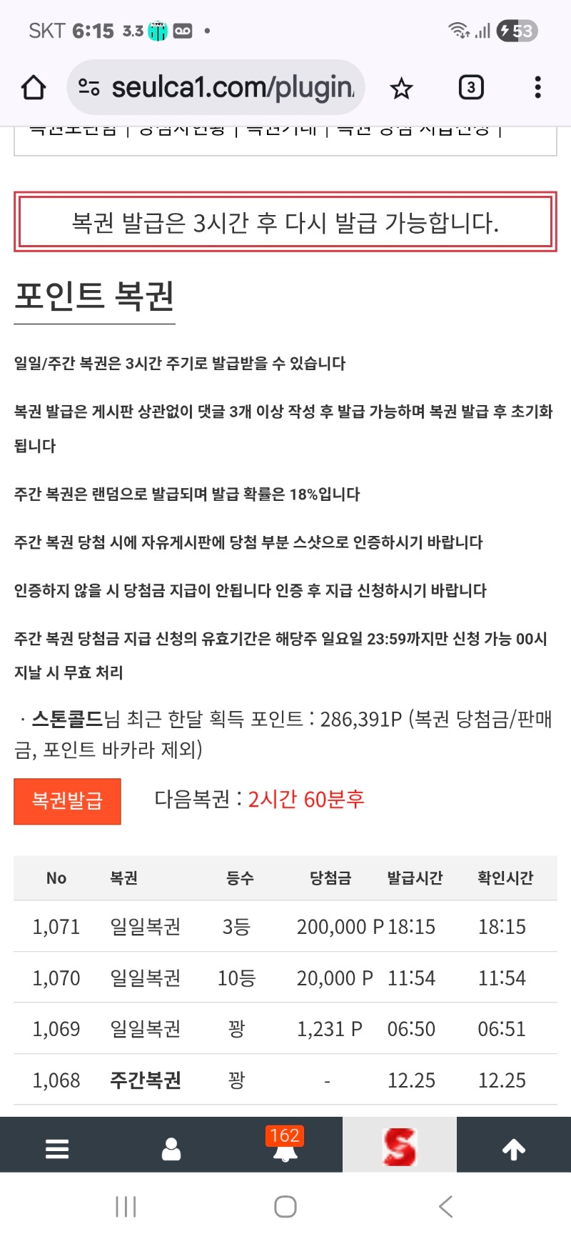 일복 10등 3등연속당첨ㅋ 스톤콜드 2 1 0 18:16:12 *기프티콘 바코드 노출 주의* <- 1 0 https://seulca1.com/bbs/board.php?bo_table=free&wr_id=3419856 Author 3 1 Lv.10 스톤콜드 10 9,754,220 (87%) 스톤콜드님 보유 포인트 : P 1,658,279 +2 12.26 일복 10등 3등연속당첨ㅋ 12.25 쌍복다꽝이네 +4 12.25 생일포인트 +1 12.25 오늘하루도 12.25 출근길포인트