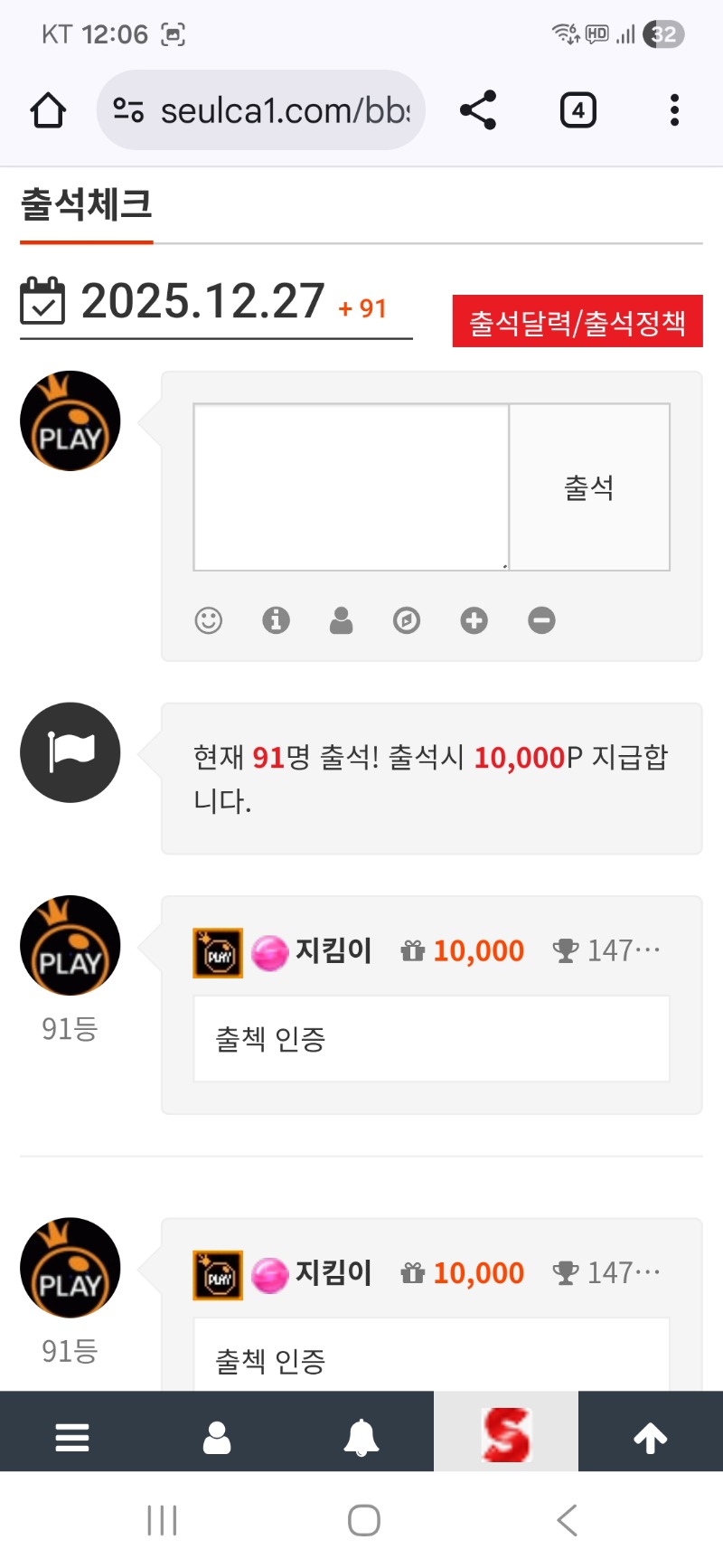 출첵 인증 지킴이 2 0 0 00:07:08 *기프티콘 바코드 노출 주의* <- 만근 가보자구요 ^^♡ 0 0 https://seulca1.com/bbs/board.php?bo_table=free&wr_id=3421039 Author 9 4 Lv.18 지킴이 18 132,485,694 (54%) 지킴이님 보유 포인트 : P 191,823 12.27 첫일복은..역시나 ㅋ +5 12.27 주복1등 나오니 주복오는 센스 ㅋ +2 12.27 출첵 인증 +4 12.26 오늘하루 수고하셨습니다 +4 12.26 사자 수익기념 슬포