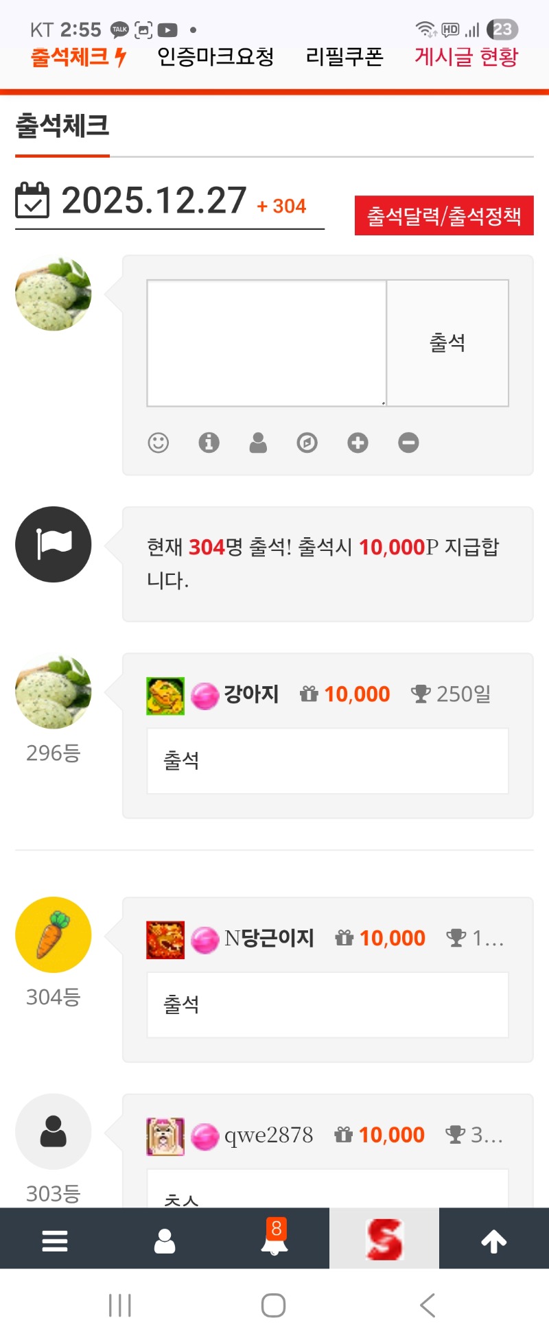 1년만근 가보자구요 ^^ 강아지 2 0 0 02:58:19 *기프티콘 바코드 노출 주의* <- 0 0 https://seulca1.com/bbs/board.php?bo_table=free&wr_id=3421425 Author 0 0 Lv.12 강아지 12 14,062,678 (21%) 강아지님 보유 포인트 : P 1,683,826 +2 12.27 1년만근 가보자구요 ^^ +3 12.27 출근길 커피당첨 고마워용 ^^^ +31 12.26 할배 슈퍼스캐터 324배 +30 12.26 가토 슈퍼스캐터 208배 +31 12.26 좀비스쿨 216배
