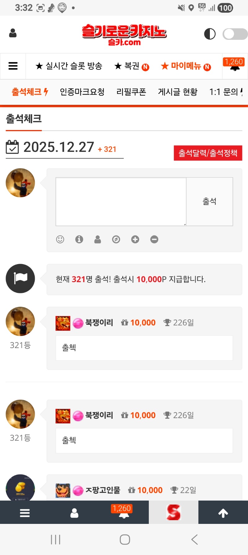 출첵 북쟁이리 0 0 0 03:36:18 *기프티콘 바코드 노출 주의* <- 오늘도 화이팅입니다 0 0 https://seulca1.com/bbs/board.php?bo_table=free&wr_id=3421461 Author 4 3 Lv.14 북쟁이리 14 23,447,379 (6%) 북쟁이리님 보유 포인트 : P 23,346 12.27 출첵 +1 12.27 모닝복권 +4 12.26 시안,나인.우루스. 다 입금처리 안되네요. 12.26 수익왕 69배.ㅠ +2 12.26 수익왕 신청완료.