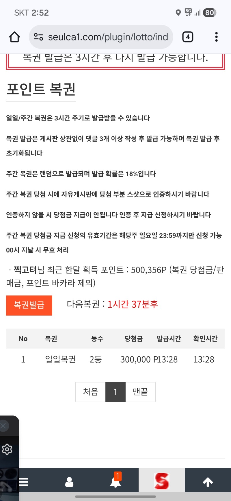 복권2등! 찍고텨 15 1 0 14:53:26 *기프티콘 바코드 노출 주의* <- 1 0 https://seulca1.com/bbs/board.php?bo_table=free&wr_id=3423127 Author 0 0 Lv.2 찍고텨 2 12,756 (1%) 찍고텨님 보유 포인트 : P 502,356 +15 12.27 복권2등! +19 12.11 가입인사