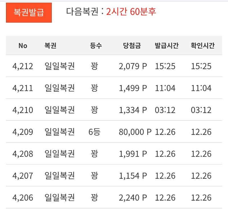 복권 한번 긁고 ~!! 우니25 2 0 0 15:27:36 *기프티콘 바코드 노출 주의* <- 일복 꽝 나왔어여 ~!! 즐거운 하루 되세요 0 0 https://seulca1.com/bbs/board.php?bo_table=free&wr_id=3423261 Author 11 5 Lv.17 우니25 17 92,794,808 (75%) 우니25님 보유 포인트 : P 4,686,963 +21 12.27 피에스타 114배/ +11 12.27 와일드 웨스트 골드 185배~ +2 12.27 복권 한번 긁고 ~!! +2 12.27 새벽시간 복권 한번 긁고 ~!! +2 12.27 출석 체크 ~~!!