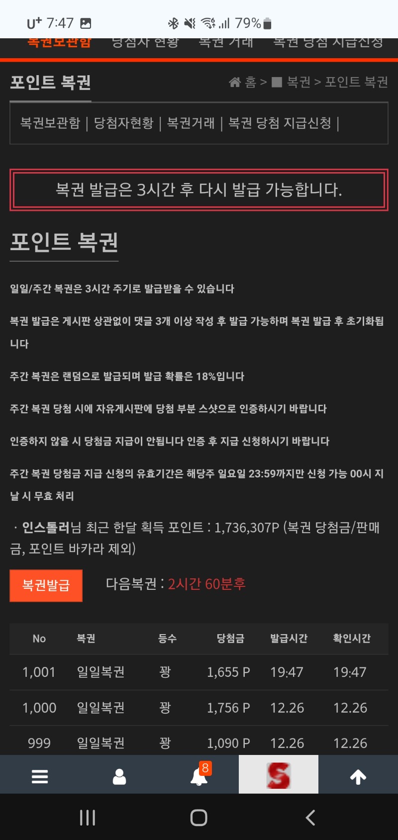 오늘 첫복권 꽝 1001번째 인스톨러 3 0 0 19:48:19 *기프티콘 바코드 노출 주의* <- 아오 1등좀주자ㅋㅋ 0 0 https://seulca1.com/bbs/board.php?bo_table=free&wr_id=3424485 Author 1 0 Lv.11 인스톨러 11 10,384,936 (12%) 인스톨러님 보유 포인트 : P 3,082 +3 12.27 오늘 첫복권 꽝 1001번째 +16 12.27 룰렛 크게이겨보고싶다 승리 +15 12.27 룰렛 나름 좋은결과 승리 +9 12.27 룰렛 어제꺼 이긴거 +4 12.27 늦은 출첰