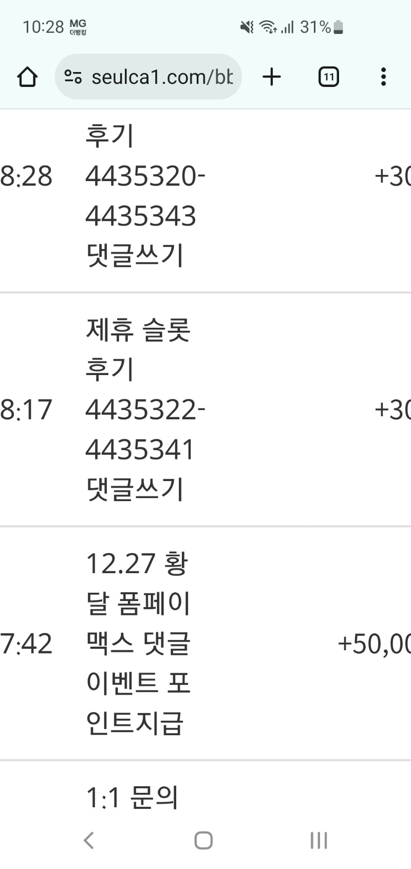 달님 맥스기념 5만포 감사해요 타파할 1 0 0 12.27 22:29 *기프티콘 바코드 노출 주의* <- 0 0 https://seulca1.com/bbs/board.php?bo_table=free&wr_id=3425134 Author 0 0 Lv.11 타파할 11 11,395,422 (46%) 타파할님 보유 포인트 : P 124,874 +1 12.27 달님 맥스기념 5만포 감사해요 +1 12.27 [비밀글] 포교신청 합니다 +15 12.26 카지노2751 +1 12.26 키링선물 감사합니다 +27 12.26 머스탱트레일 381배