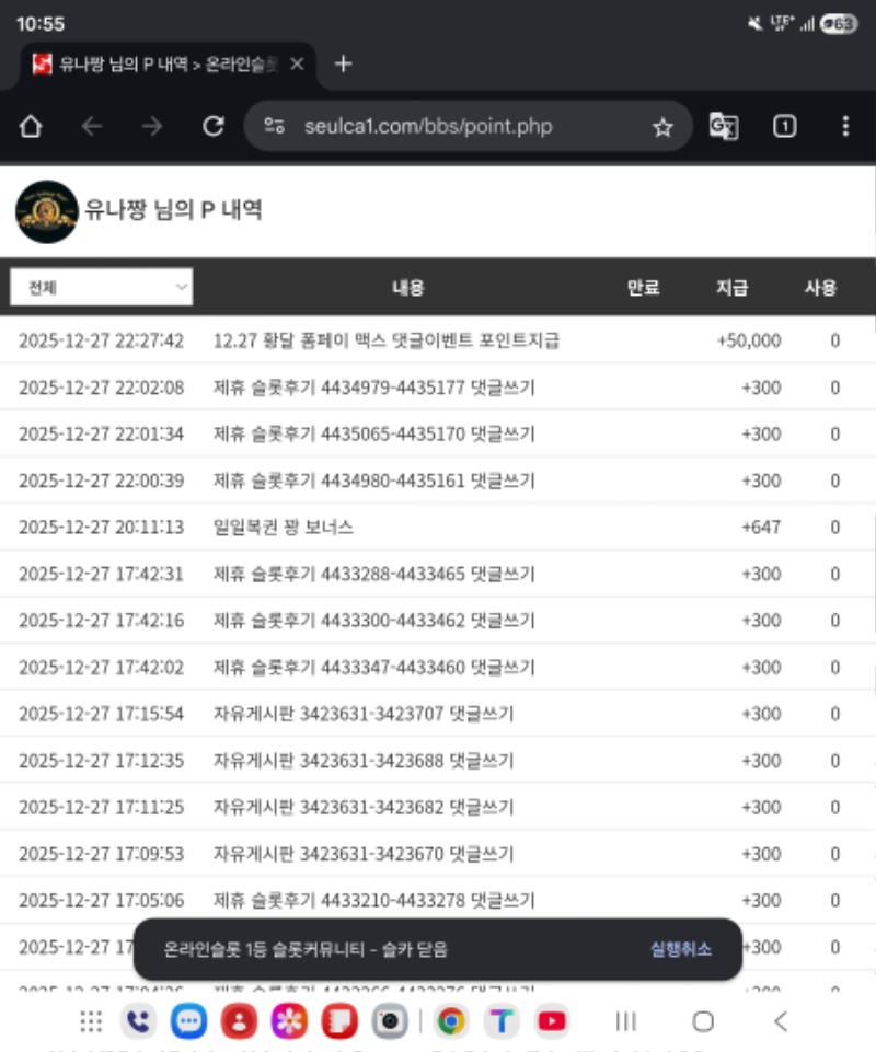 달이 맥스기념 포인트고마워 유나짱 2 0 0 12.27 22:56 *기프티콘 바코드 노출 주의* <- 0 0 https://seulca1.com/bbs/board.php?bo_table=free&wr_id=3425295 Author 0 0 Lv.9 유나짱 9 6,021,020 (50%) 유나짱님 보유 포인트 : P 1,107,018 +2 12.27 달이 맥스기념 포인트고마워 +8 12.27 왜케 허전하지ㅡㅡ +21 12.27 와일드웨스트골드112 +15 12.27 포츈오브기자126 +14 12.27 판다1 203