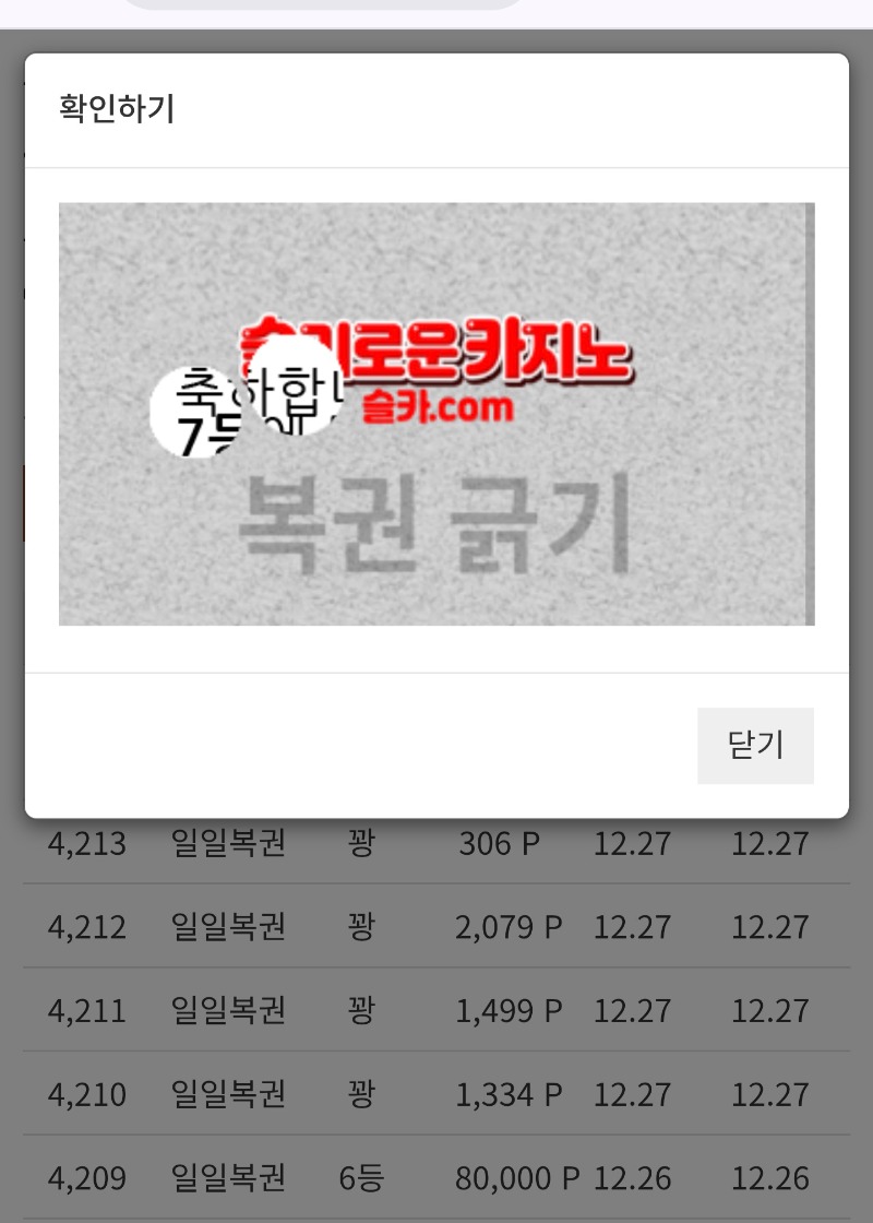 일복 7등 당첨 ~!!^^ 감사합니다 우니25 9 0 0 00:21:07 *기프티콘 바코드 노출 주의* <- 일복 7등 당첨 ~!!^^ 감사합니다 ㅅㅅㅅㅅㅅ 0 0 https://seulca1.com/bbs/board.php?bo_table=free&wr_id=3425558 Author 11 5 Lv.17 우니25 17 92,908,421 (76%) 우니25님 보유 포인트 : P 4,923,658 +9 12.28 일복 7등 당첨 ~!!^^ 감사합니다 +4 12.28 출석 체크 ~~!! +6 12.27 달이님 맥스 기념 댓글 슬포~!!^^ 감사합니다 +40 12.27 피에스타 375배~!! +16 12.27 피에스타 107배~