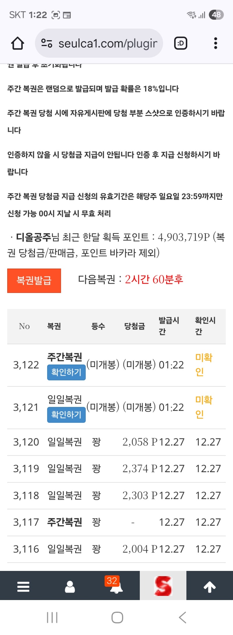 쌍복이당 ᆢ 디올공주 5 0 0 01:34:42 *기프티콘 바코드 노출 주의* <- 0 0 https://seulca1.com/bbs/board.php?bo_table=free&wr_id=3425818 Author 18 11 Lv.18 디올공주 18 153,865,012 (89%) 디올공주님 보유 포인트 : P 5,026,393 +1 12.28 토라메 2013배 +4 12.28 수고하셨습니다 ~ +5 12.28 쌍복이당 ᆢ +4 12.28 출첵합시다 +46 12.27 로또2번ㅅㅅ