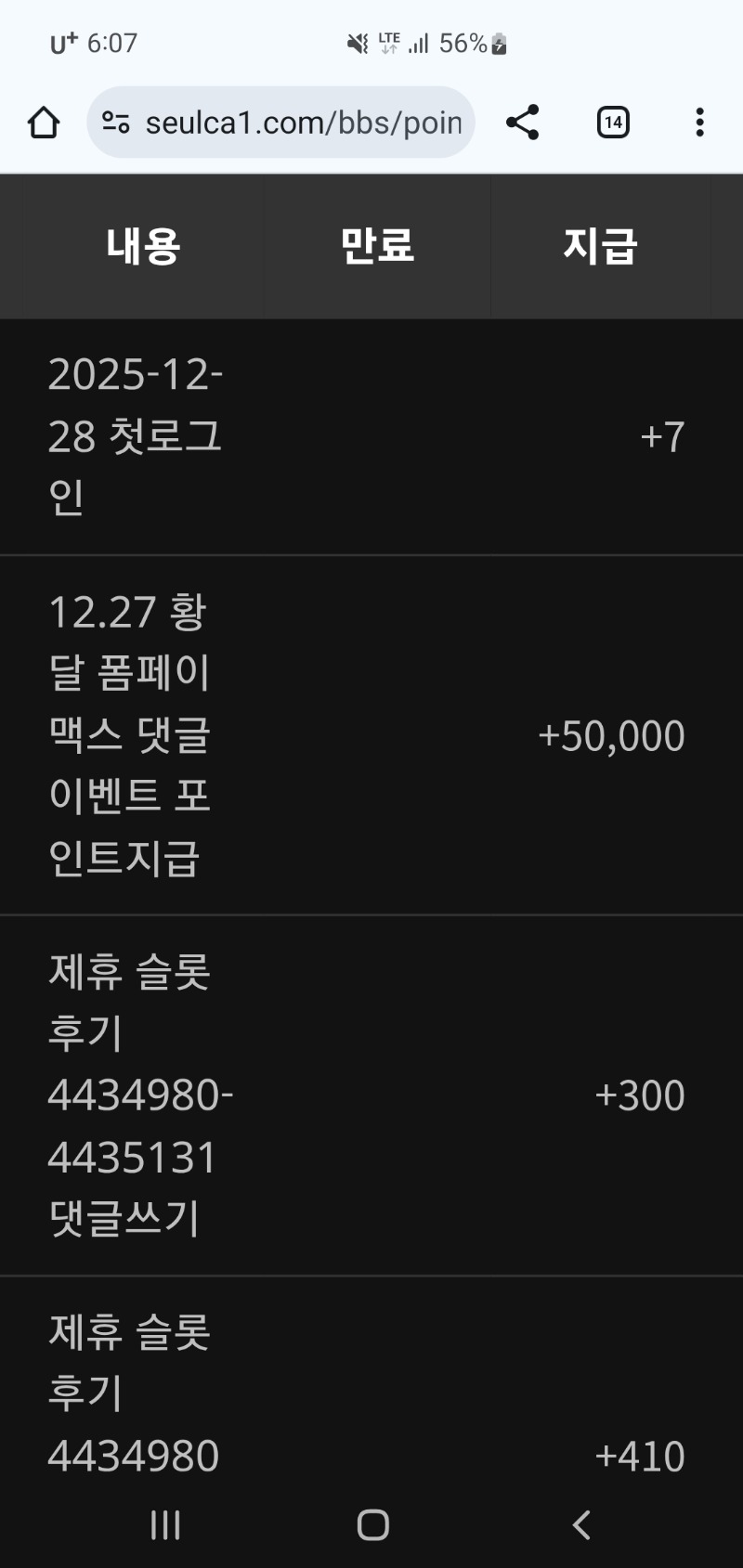 달이맥스포인트 인스톨러 5 1 0 06:08:11 *기프티콘 바코드 노출 주의* <- 달아땡큐 1 0 https://seulca1.com/bbs/board.php?bo_table=free&wr_id=3426115 Author 1 0 Lv.11 인스톨러 11 10,426,445 (14%) 인스톨러님 보유 포인트 : P 0 +3 12.28 오늘도출첵 좋은아침 +8 12.28 룰렛 승리 한칸..아오 +8 12.28 룰렛 패 졋다아오 +8 12.28 룰렛 1승 +5 12.28 달이맥스포인트
