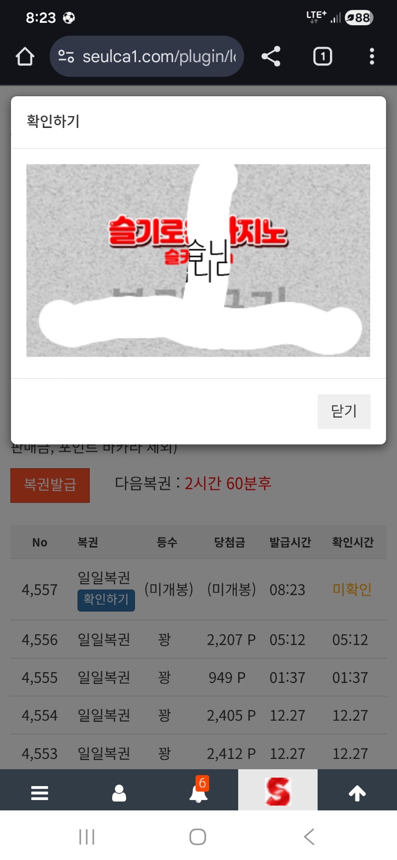 포교 해야되는디... 실버벨 6 0 0 08:24:34 *기프티콘 바코드 노출 주의* <- 당첨이 안되네.., .ㅠ 0 0 https://seulca1.com/bbs/board.php?bo_table=free&wr_id=3426374 Author 10 7 Lv.18 실버벨 18 137,029,212 (61%) 실버벨님 보유 포인트 : P 1,038,034 12.28 리필가짱 ~~~ +12 12.28 마지막 기회다 가보자~~~ +6 12.28 포교 해야되는디... +8 12.28 좋은 아침입니다 ~~ +10 12.28 복권긁고 다시자야지~~