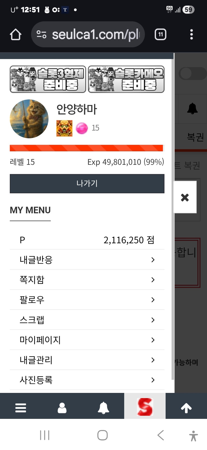 레벨 업1%부족 아자아자 안양하마 14 1 0 12:52:34 *기프티콘 바코드 노출 주의* <- 1 0 https://seulca1.com/bbs/board.php?bo_table=free&wr_id=3427448 Author 3 1 Lv.15 안양하마 15 49,817,379 (99%) 안양하마님 보유 포인트 : P 2,207,319 +12 12.28 집사람하고 굴밥 먹으러 왔어요 +14 12.28 레벨 업1%부족 아자아자 +6 12.28 심쿵이 ㅎ +5 12.28 모닝커피 +6 12.28 출첵