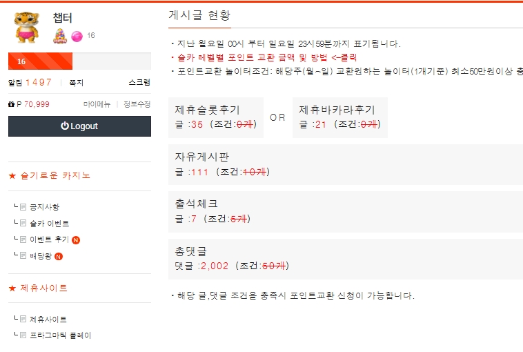이번주도 주간숙제 완료했습니다 챕터 3 1 0 18:55:19 *기프티콘 바코드 노출 주의* <- 주중에 일하느라 댓글달기가 제일 힘드네요 -ㅁ-ㅋ 숙제도 다했고 방송이나 즐겨야겠담! 1 0 https://seulca1.com/bbs/board.php?bo_table=free&wr_id=3429303 Author 9 5 Lv.16 챕터 16 59,174,630 (45%) 챕터님 보유 포인트 : P 4,000 +6 12.28 최바비 현황 공유드립니다 +4 12.28 이번주 포교도 실패 ㅠ +3 12.28 펭이 추천겜 당첨 +3 12.28 이번주도 주간숙제 완료했습니다 +11 12.28 최바비 현황 (비버,랑이,양이)