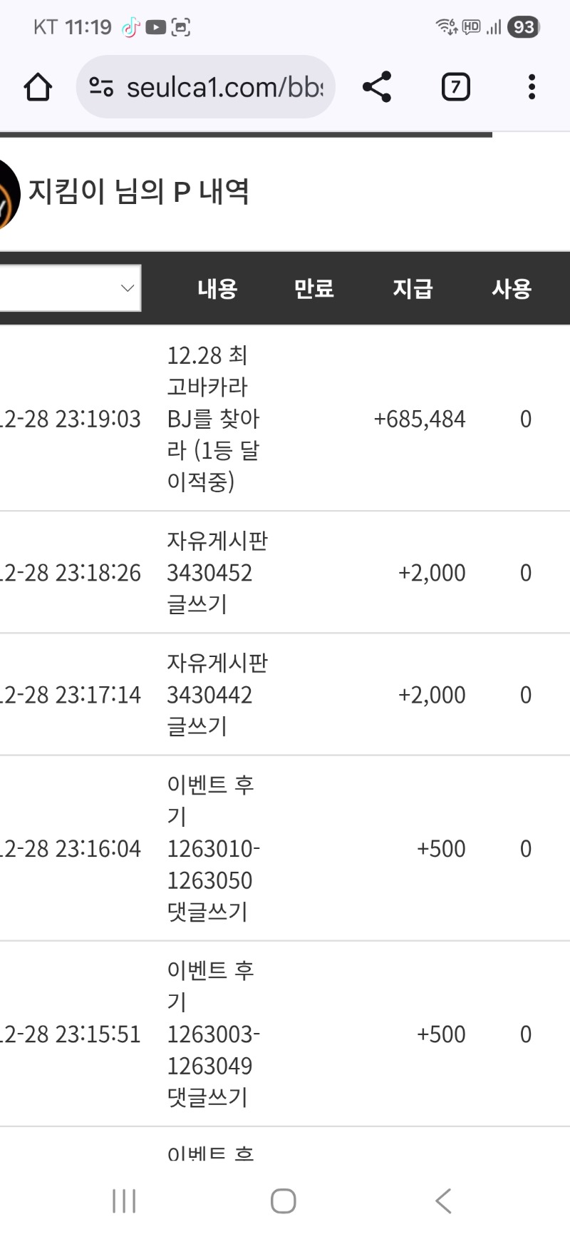 최바비 포인트 ~~~ 지킴이 5 1 0 12.28 23:20 *기프티콘 바코드 노출 주의* <- 달아 고마워 ^^♡ 1 0 https://seulca1.com/bbs/board.php?bo_table=free&wr_id=3430465 Author 9 4 Lv.18 지킴이 18 133,066,571 (55%) 지킴이님 보유 포인트 : P 1,645,101 +2 12.29 전이만. 굿밤여 ~~ 12.29 출첵 인증 12.29 이번주 첫일복은..꽝 +5 12.28 최바비 포인트 ~~~ +2 12.28 이번주도 수고하셨습니다