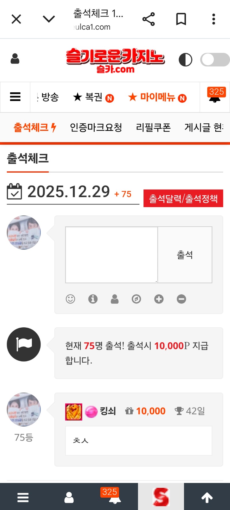 출석 킹쇠 0 0 0 00:04:56 *기프티콘 바코드 노출 주의* <- 0 0 https://seulca1.com/bbs/board.php?bo_table=free&wr_id=3430754 Author 3 0 Lv.13 킹쇠 13 20,264,341 (45%) 킹쇠님 보유 포인트 : P 0 12.29 출석 +7 12.25 일복1등 12.25 출헉 +4 12.24 일복10등 +2 12.23 일복10등
