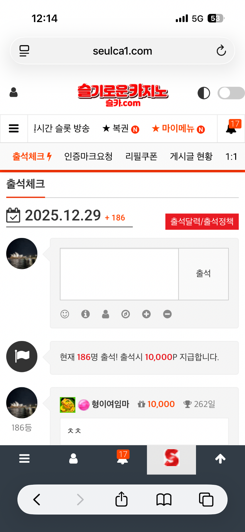 출석 형이여임마 0 0 0 00:14:42 *기프티콘 바코드 노출 주의* <- 0 0 https://seulca1.com/bbs/board.php?bo_table=free&wr_id=3430796 Author 1 0 Lv.12 형이여임마 12 16,542,814 (70%) 형이여임마님 보유 포인트 : P 1,863,219 +2 12.29 시카라 마지막 소액패배 +2 12.29 시카라 2연승 ㅅㅅ +3 12.29 시카라 내추럴승 ㅅ +1 12.29 아벤계열 보상안 지렸다 12.29 출석