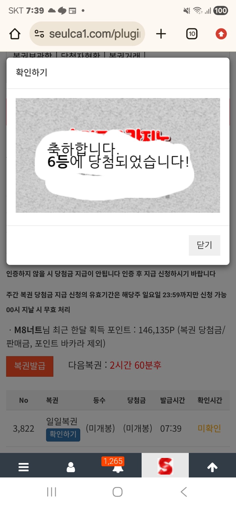 월요일 첫 일복 6등 M8너트 5 0 0 07:40:18 *기프티콘 바코드 노출 주의* <- 감사하죠 0 0 https://seulca1.com/bbs/board.php?bo_table=free&wr_id=3431693 Author 3 0 Lv.13 M8너트 13 21,987,079 (79%) M8너트님 보유 포인트 : P 332,800 +5 12.29 월요일 첫 일복 6등 +2 12.27 복권은 당첨되면 죄다 10등이여 12.25 크리스마스 흠 라면이나 먹어야겠다 +1 12.25 주간복권 너어~~~~ +1 12.24 최바비 당첨