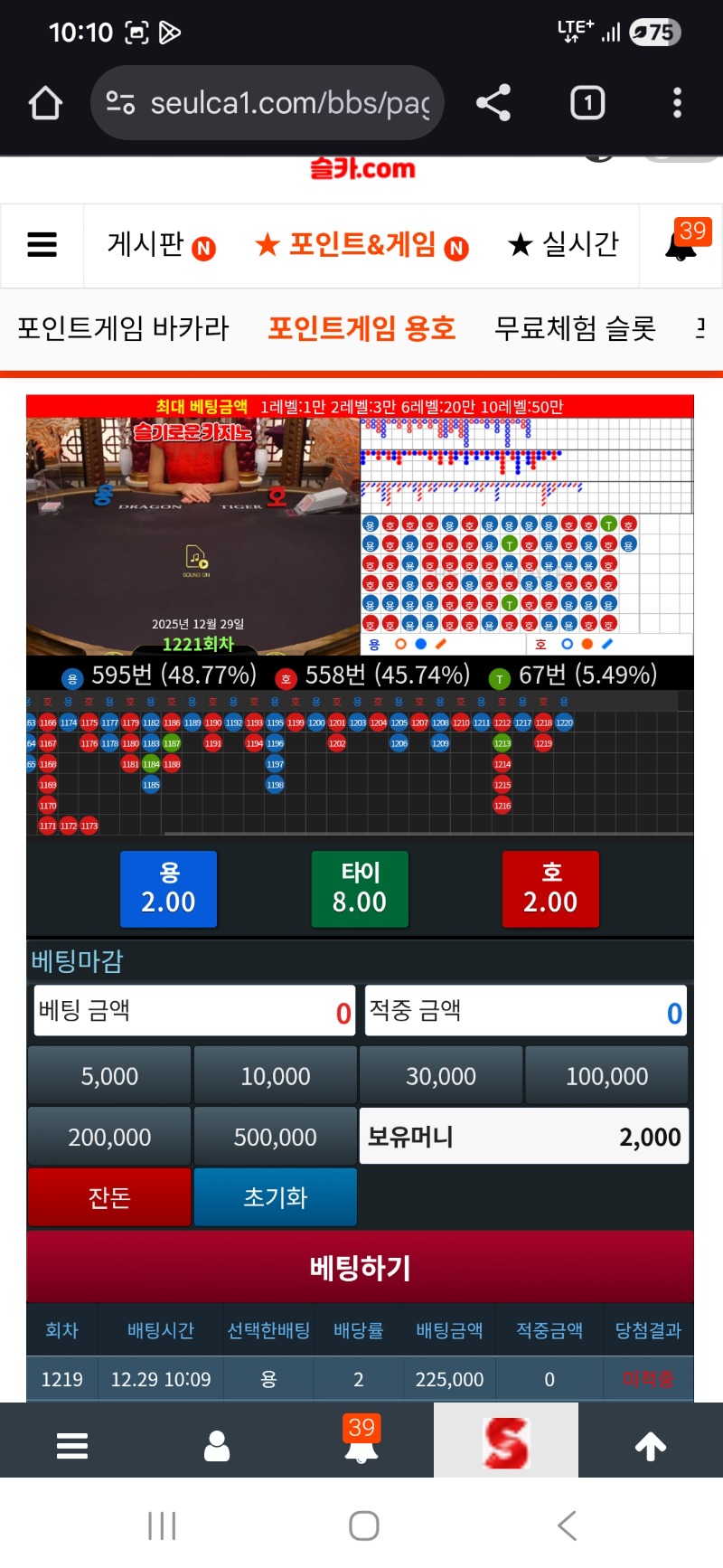동시에 다틀리네 ... 실버벨 1 0 0 10:53:38 *기프티콘 바코드 노출 주의* <- 지지리 복도 없는기라... 0 0 https://seulca1.com/bbs/board.php?bo_table=free&wr_id=3432282 Author 10 7 Lv.18 실버벨 18 137,749,883 (62%) 실버벨님 보유 포인트 : P 94,427 +4 12.29 바닥 진입이 전혀안되네...ㅠ +7 12.29 4승 ㅋㅋ +6 12.29 3승 하고~~~~ +6 12.29 옹예 2승~~~ +8 12.29 뱅커 줄탄다~~~