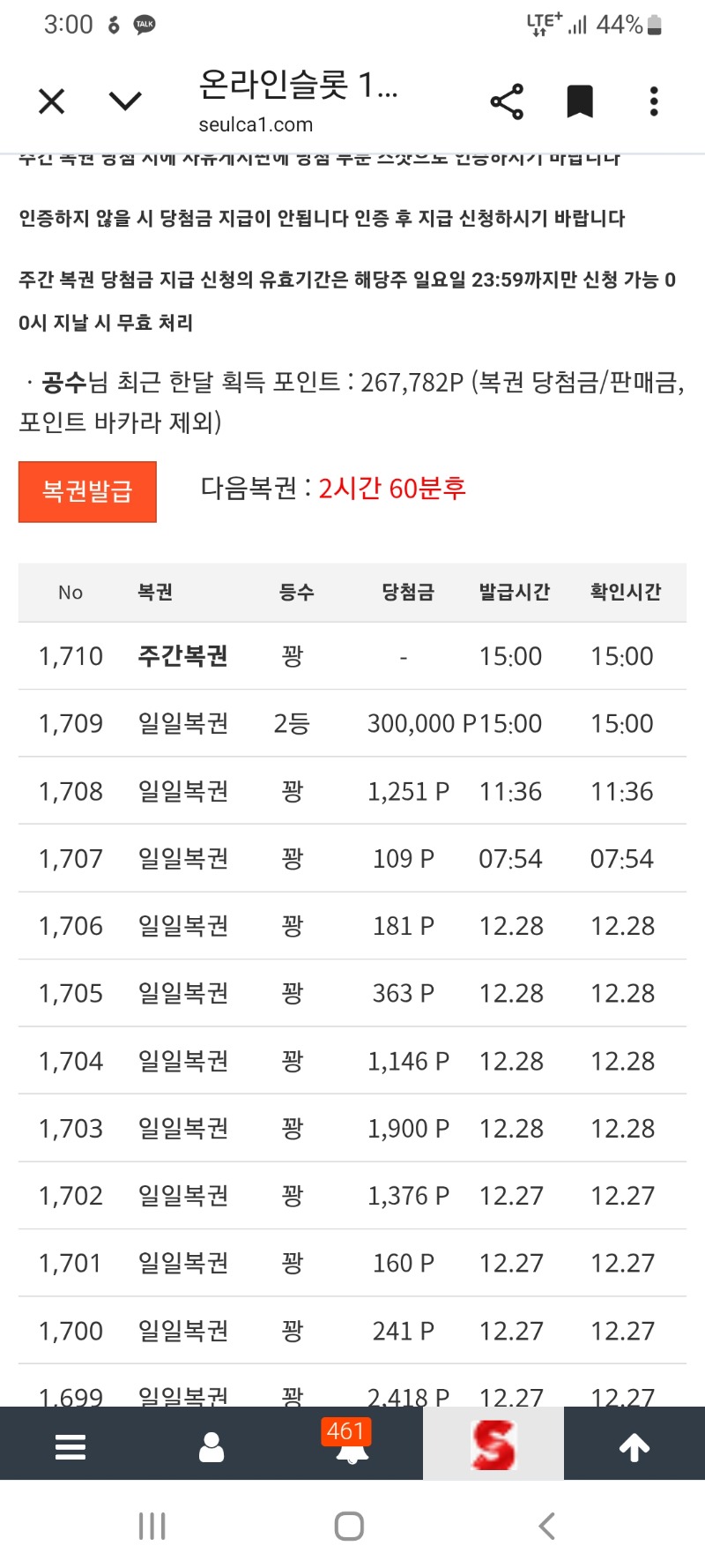 앗싸., .일복 2등 이당 공수 12 0 0 15:01:29 *기프티콘 바코드 노출 주의* <- 0 0 https://seulca1.com/bbs/board.php?bo_table=free&wr_id=3433195 Author 3 0 Lv.11 공수 11 12,422,431 (80%) 공수님 보유 포인트 : P 264,337 12.29 잘하면10연패.가능했는데.ㅋ +1 12.29 이번주는 수익도 좀 보고...포교도 하고...해봅시다 +12 12.29 앗싸., .일복 2등 이당 +3 12.28 다들 점심 챙겨드시고 남은시간.행복하세요 +2 12.27 다들 좋은 시간 보내시고 안녕히 주무세요