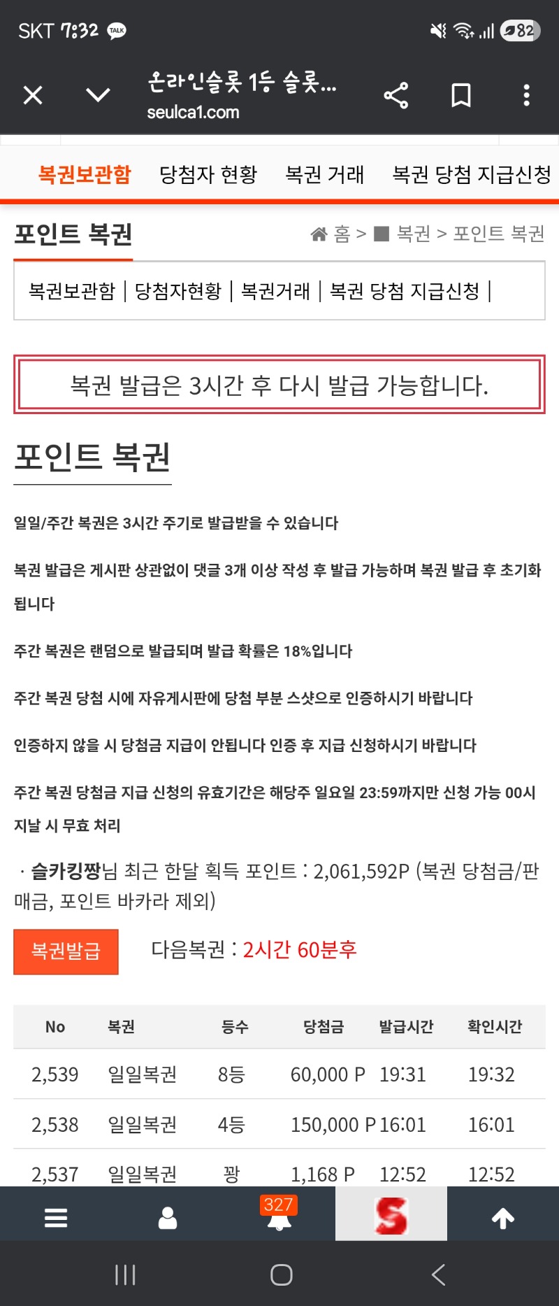 일복이 연속 당촘ㅋㅋ 슬카킹짱 7 0 0 19:32:52 *기프티콘 바코드 노출 주의* <- 4등다음 8등이라닝ㅋ 감솨합니다 0 0 https://seulca1.com/bbs/board.php?bo_table=free&wr_id=3434330 Author 1 1 Lv.12 슬카킹짱 12 13,168,107 (3%) 슬카킹짱님 보유 포인트 : P 2,180,081 +7 12.29 일복이 연속 당촘ㅋㅋ +8 12.29 일복 4등 나이샷~~~ +7 12.29 좀비카니발 1122 +1 12.29 점심시간 왜이리 짧은거징?ㅜㅜ +21 12.29 뱀피 108배