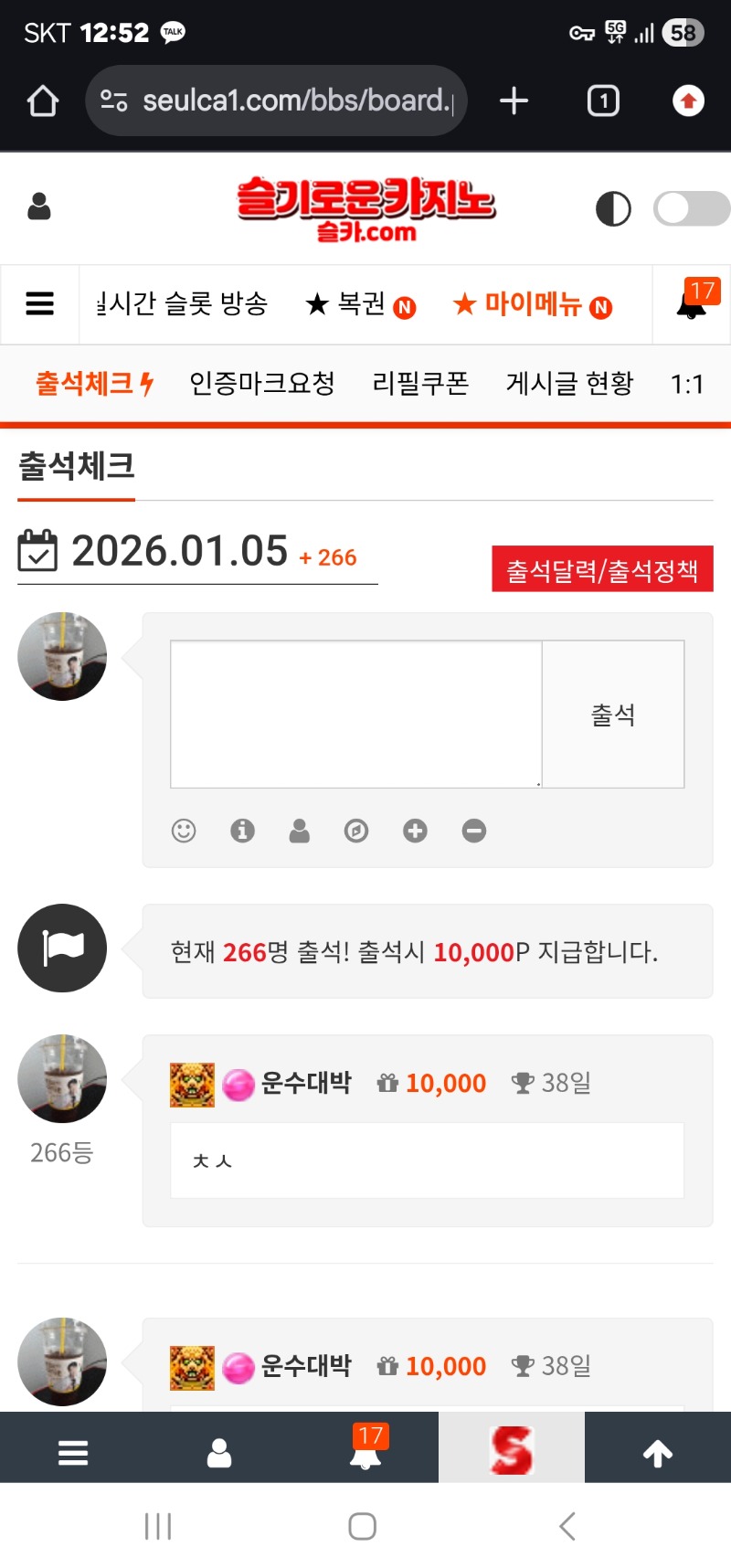 출첵합니다 운수대박 0 0 0 01.05 00:52 *기프티콘 바코드 노출 주의* <- 즐거운하루되세요 0 0 https://seulca1.com/bbs/board.php?bo_table=free&wr_id=3459244 Author 9 2 Lv.15 운수대박 15 41,505,427 (57%) 운수대박님 보유 포인트 : P 5,471,902 01.19 출첵합니다 +1 01.18 [비밀글] 배민이요~ 01.12 출첵합니다 01.06 출첵합니다 01.05 출첵합니다