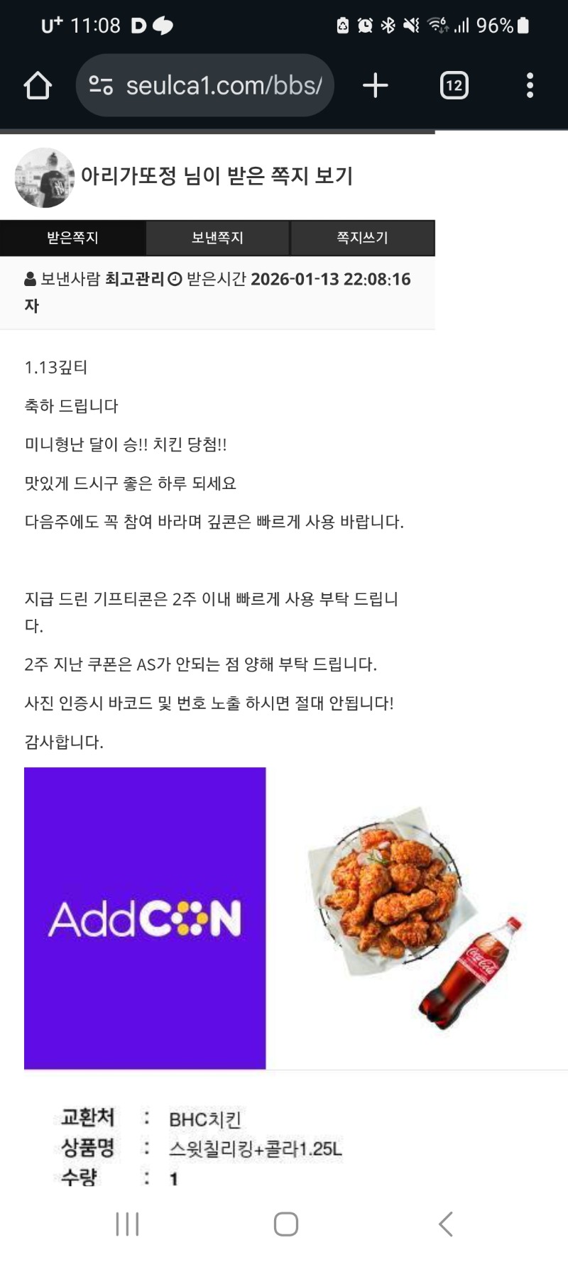 달이잘먹을께 아리가또정 0 0 0 01.13 23:09 *기프티콘 바코드 노출 주의* <- 축하해 잘먹을께 0 0 https://seulca1.com/bbs/board.php?bo_table=free&wr_id=3484390 Author 4 2 Lv.12 아리가또정 12 16,793,428 (75%) 아리가또정님 보유 포인트 : P 14,350,914 01.13 달이잘먹을께 +1 01.04 가족방쿠폰감사합니다 +1 01.04 [비밀글] 가족방배민 +1 01.02 랜덤쿠폰감사합니다 +1 01.02 [비밀글] 쿠폰감사합니다