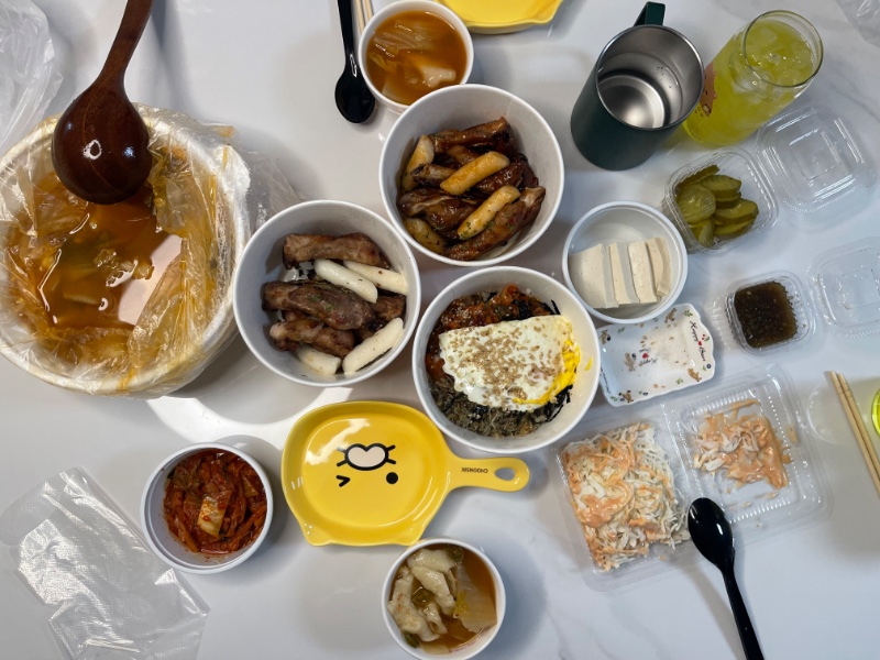 그분집에서 지금 쪽갈비 수제비 김치멸치볶음밥 ㅋ