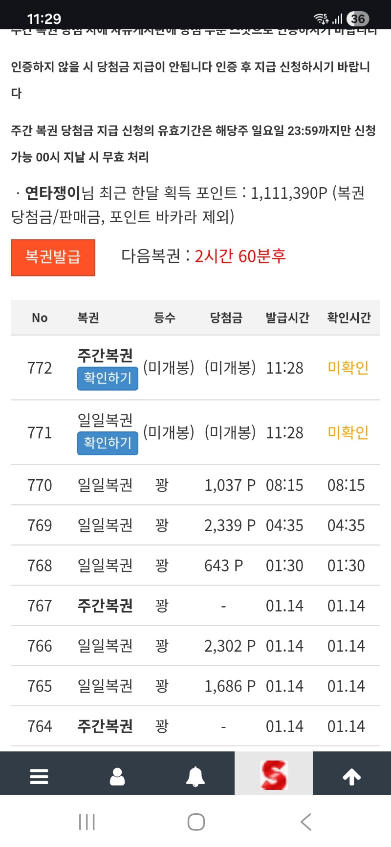 주간복권등장 연타쟁이 1 0 0 11:30:19 *기프티콘 바코드 노출 주의* <- 1등 이제 그만 가져가도 될까요? ㅋ 0 0 https://seulca1.com/bbs/board.php?bo_table=free&wr_id=3488159 Author 1 0 Lv.9 연타쟁이 9 7,420,911 (85%) 연타쟁이님 보유 포인트 : P 1,288,595 +1 01.15 주간복권등장 +1 01.15 굿모닝이요 +1 01.14 맛저하세요 +24 01.14 토라매 404배 +17 01.13 카지노헤이스트237배