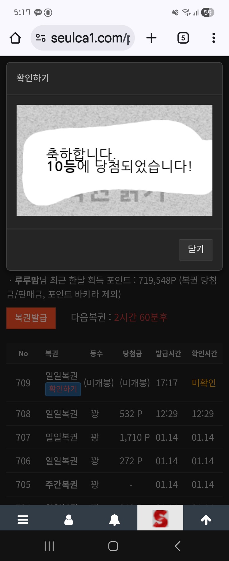 10등 당첨 축하드려요 ~~