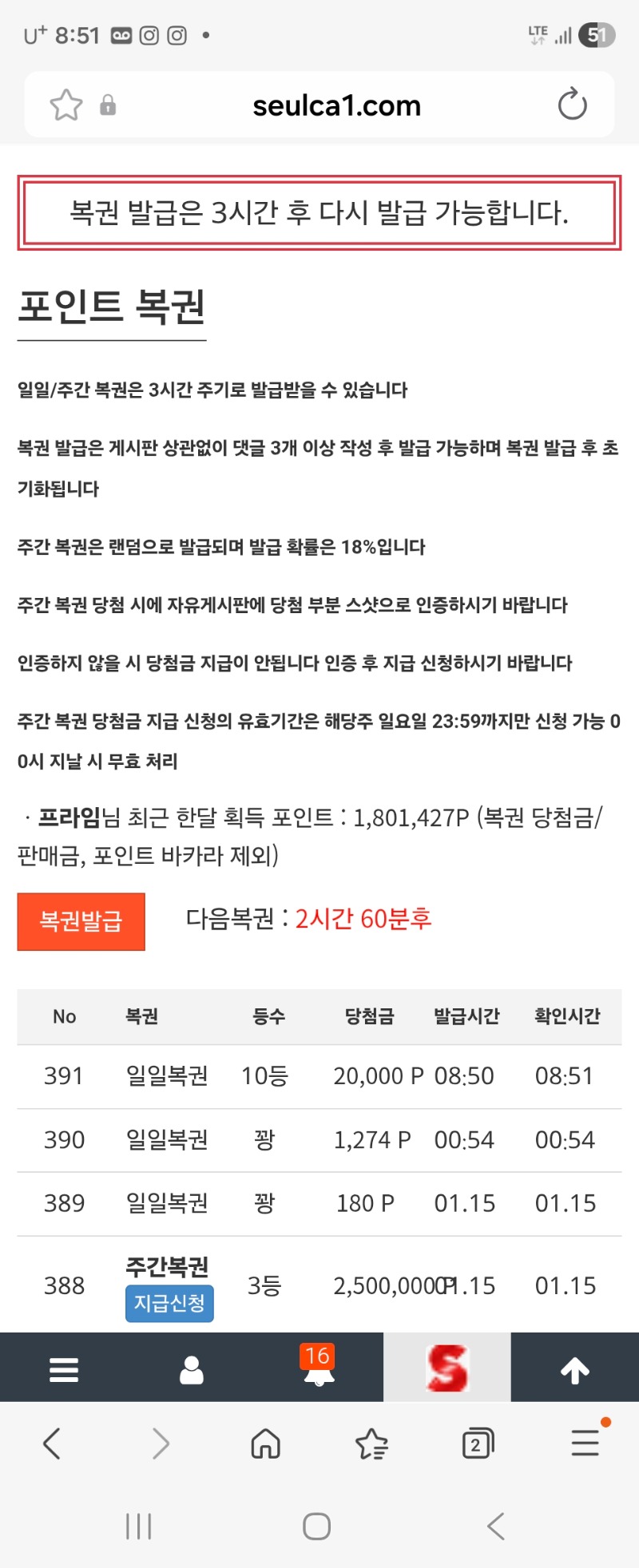 일복 당첨... 10등 프라임 4 0 0 01.16 08:52 *기프티콘 바코드 노출 주의* <- 0 0 https://seulca1.com/bbs/board.php?bo_table=free&wr_id=3490804 Author 0 0 Lv.7 프라임 7 2,445,656 (44%) 프라임님 보유 포인트 : P 522,763 01.19 굿모님. 눈이 왔네요 +1 01.18 [비밀글] 포교신청합니다 +1 01.17 [비밀글] 주복 3등신청 +4 01.16 일복 당첨... 10등 +2 01.16 굿모닝 입니다