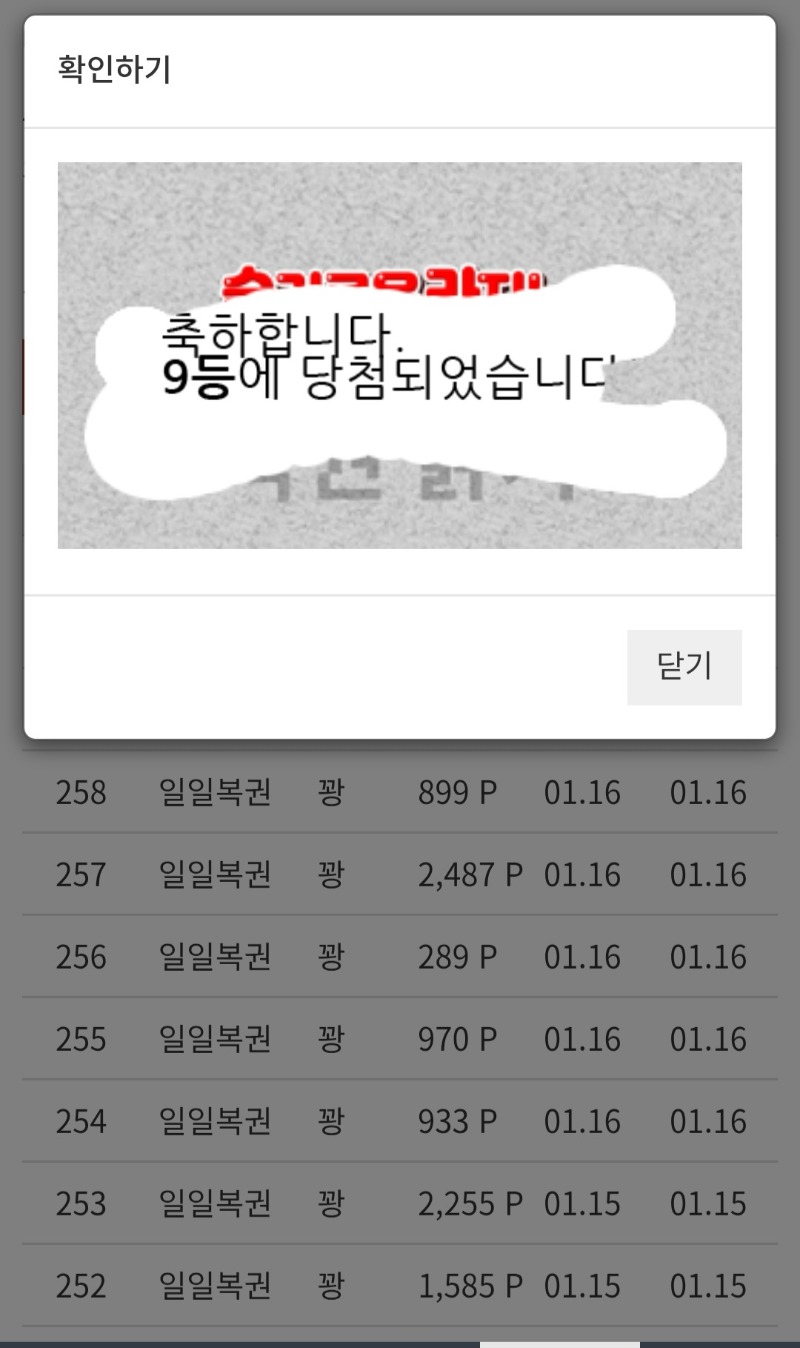 일복9등 꼴초 16 1 0 10:57:39 *기프티콘 바코드 노출 주의* <- 1 0 https://seulca1.com/bbs/board.php?bo_table=free&wr_id=3493625 Author 0 0 Lv.10 꼴초 10 8,575,873 (28%) 꼴초님 보유 포인트 : P 1,793,941 01.17 커피한잔승 +4 01.17 지킴이님자게보고 방금출석 까먹을뻔햇네요 +2 01.17 오늘은 술약속 없어라 제발 +6 01.17 주복1등나왓네요?부럽네요 +16 01.17 일복9등