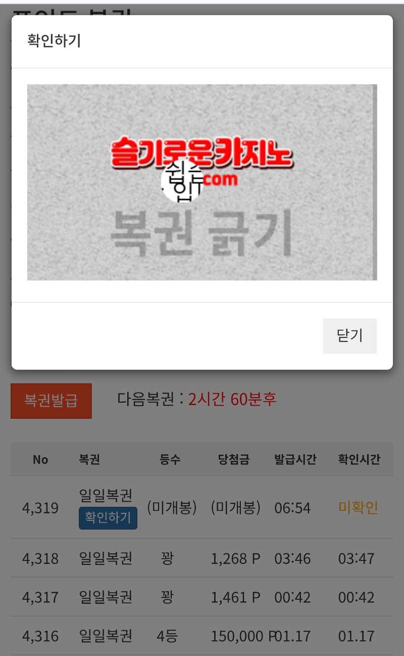 일복 꽝 나왔어여 ~~~~!! 우니25 0 0 0 06:55:38 *기프티콘 바코드 노출 주의* <- 복권 한번 긁고 ~~~~!! 0 0 https://seulca1.com/bbs/board.php?bo_table=free&wr_id=3495896 Author 11 5 Lv.17 우니25 17 97,912,970 (93%) 우니25님 보유 포인트 : P 3,592,000 +1 01.18 굳모닝 ^^ 01.18 일복 꽝 나왔어여 ~~~~!! 01.18 새벽시간 복권 한번 긁고 ~~!! +6 01.18 포교 신청 했습니다 ~!!^^ +21 01.18 바카라 2승 내추럴 9승 ~~!!