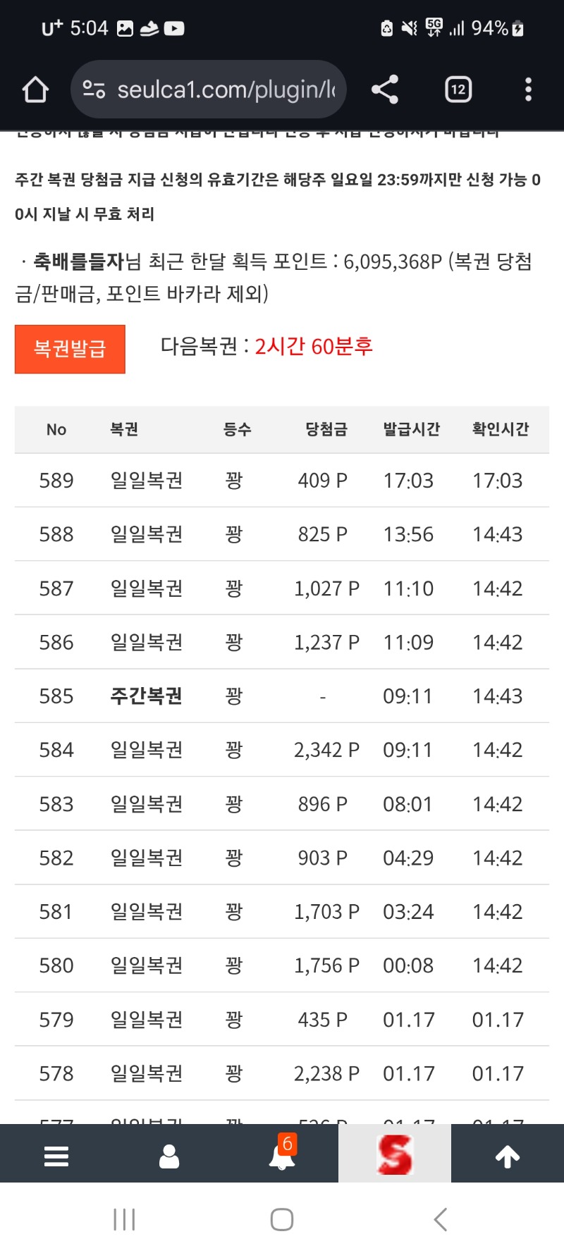 복권구매도 꽝 꽝꽝 축배를들자 2 0 0 17:04:59 *기프티콘 바코드 노출 주의* <- ㅠㅠ아쉽네요 0 0 https://seulca1.com/bbs/board.php?bo_table=free&wr_id=3497015 Author 2 0 Lv.11 축배를들자 11 11,539,814 (51%) 축배를들자님 보유 포인트 : P 7,220,347 +4 01.18 한돈1등 제발 부탁드립니다 +2 01.18 복권구매도 꽝 꽝꽝 +5 01.18 어제 포교 리필후 현재 포인트720만포 +2 01.18 최바비 포인트차감 +1 01.18 [비밀글] 교환요