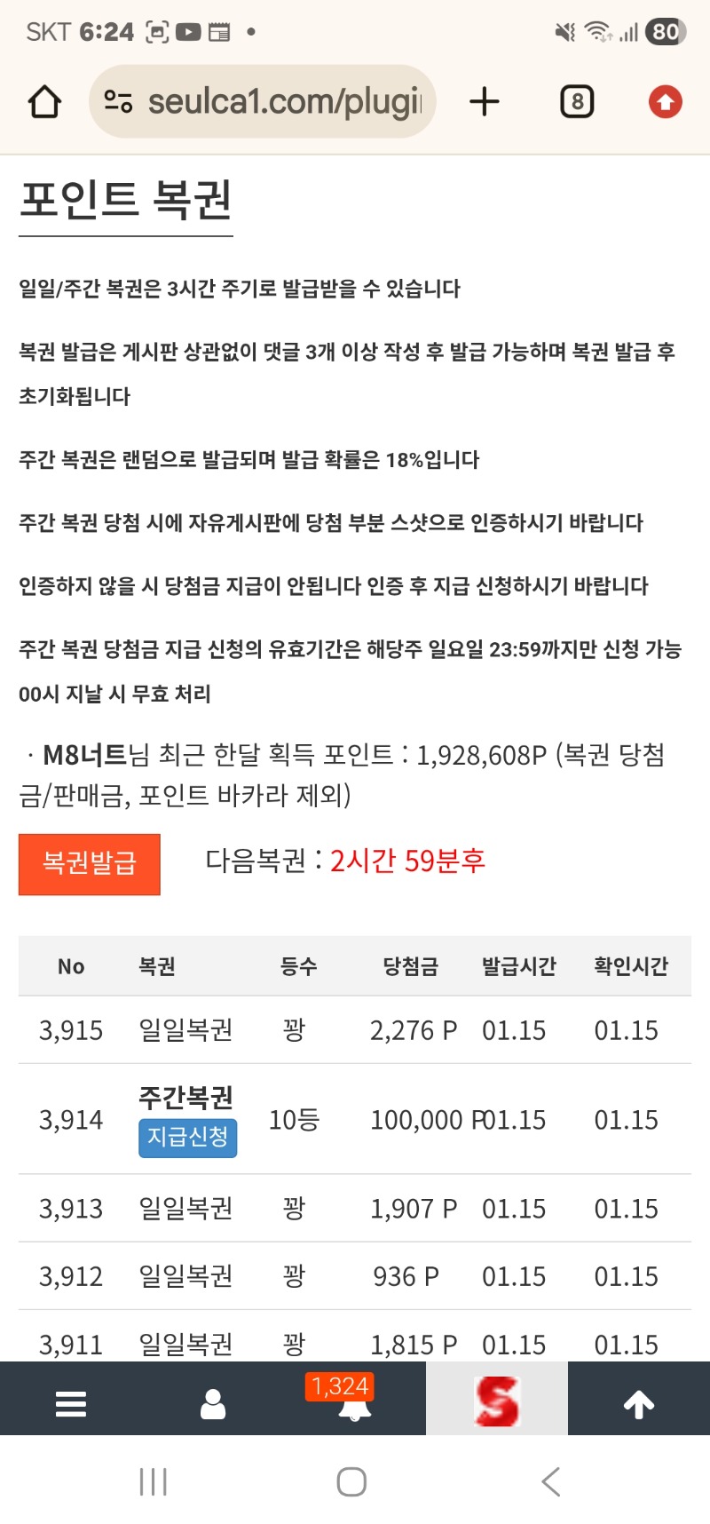 주복 9등당첨이네 M8너트 5 0 0 18:26:55 ㅇㅔ효 0 0 https://seulca1.com/bbs/board.php?bo_table=free&wr_id=3497175 Author 3 0 Lv.13 M8너트 13 22,918,686 (98%) M8너트님 보유 포인트 : P 0 +1 01.18 [비밀글] 주간복권 신청합니다 +1 01.18 [비밀글] 주복신청합니다 +5 01.18 주복 9등당첨이네 +1 01.18 포교좀하자 +3 01.17 로또 1번 감사합니다