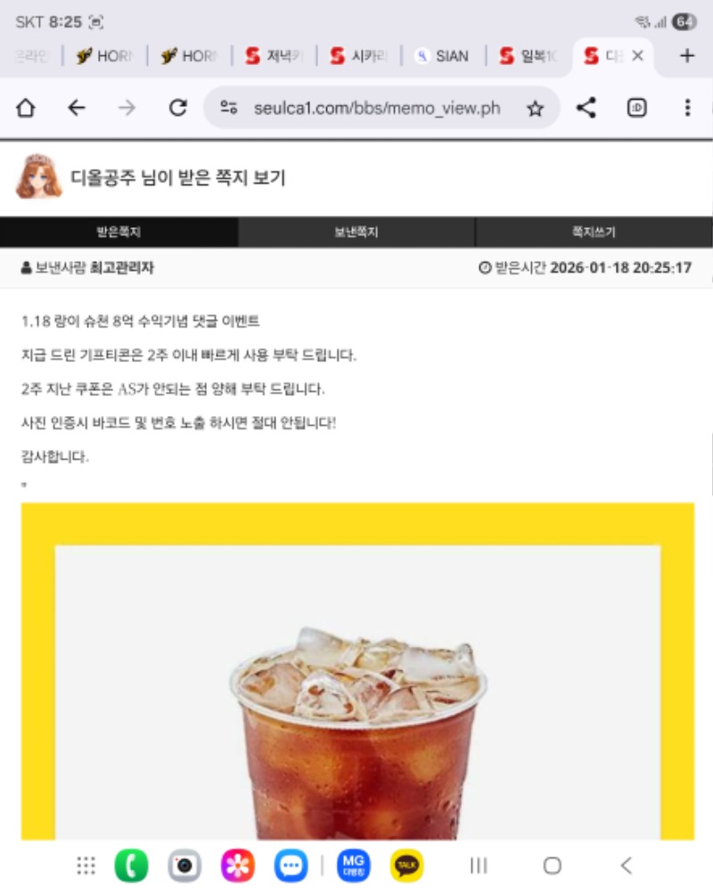랑님 수익 기념커피ㅅㅅ 디올공주 0 0 0 20:27:01 *기프티콘 바코드 노출 주의* <- 0 0 https://seulca1.com/bbs/board.php?bo_table=free&wr_id=3497491 Author 20 12 Lv.19 디올공주 19 169,086,641 (0%) 디올공주님 보유 포인트 : P 1,464,377 +6 01.18 슬포 없었는데 역시 슬카라~ 01.18 랑님 수익 기념커피ㅅㅅ +12 01.18 어쩔 넌0난2 ㅎㅎ +12 01.18 이런건 행운이다1로이겼다~ +9 01.18 돌발없어서 충해서놀기 네츄럴 나이따