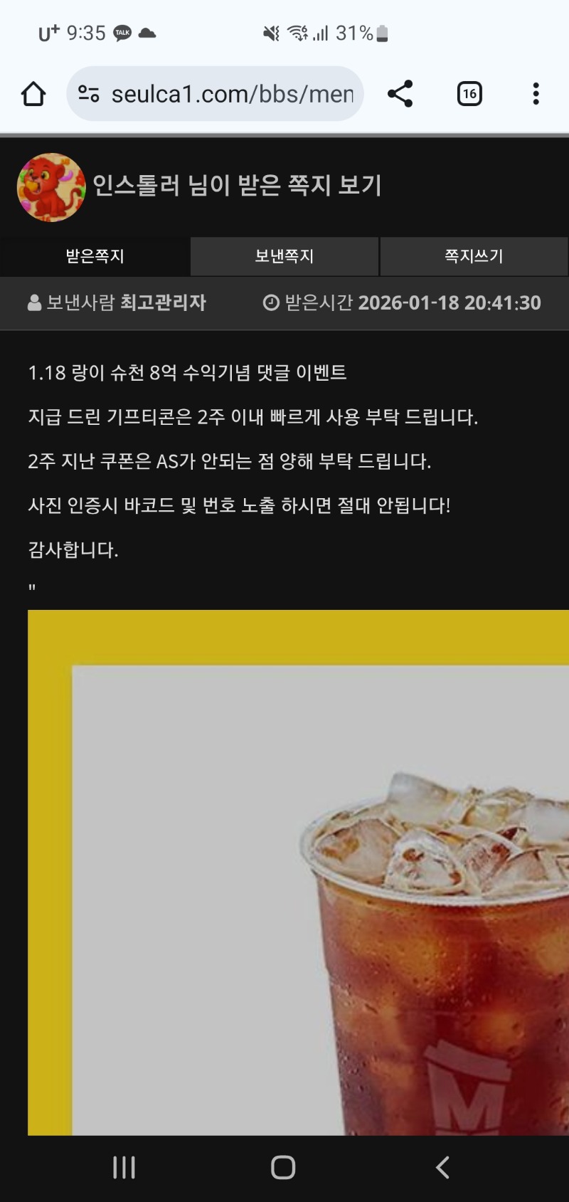 랑이수익기념 커피 ㅅㅅㅅㅅ 인스톨러 0 0 0 21:36:09 *기프티콘 바코드 노출 주의* <- 고마워 랑아 잘마실께 0 0 https://seulca1.com/bbs/board.php?bo_table=free&wr_id=3497627 Author 1 0 Lv.11 인스톨러 11 11,216,160 (40%) 인스톨러님 보유 포인트 : P 37,342 01.18 랑이수익기념 커피 ㅅㅅㅅㅅ +4 01.18 문카지노 사랑합니다 +10 01.18 신슈가 만배 맥스 +84 01.18 신슈가 바닥 10000배 맥스 인것같아요 01.18 점심 맛나게들 드세요
