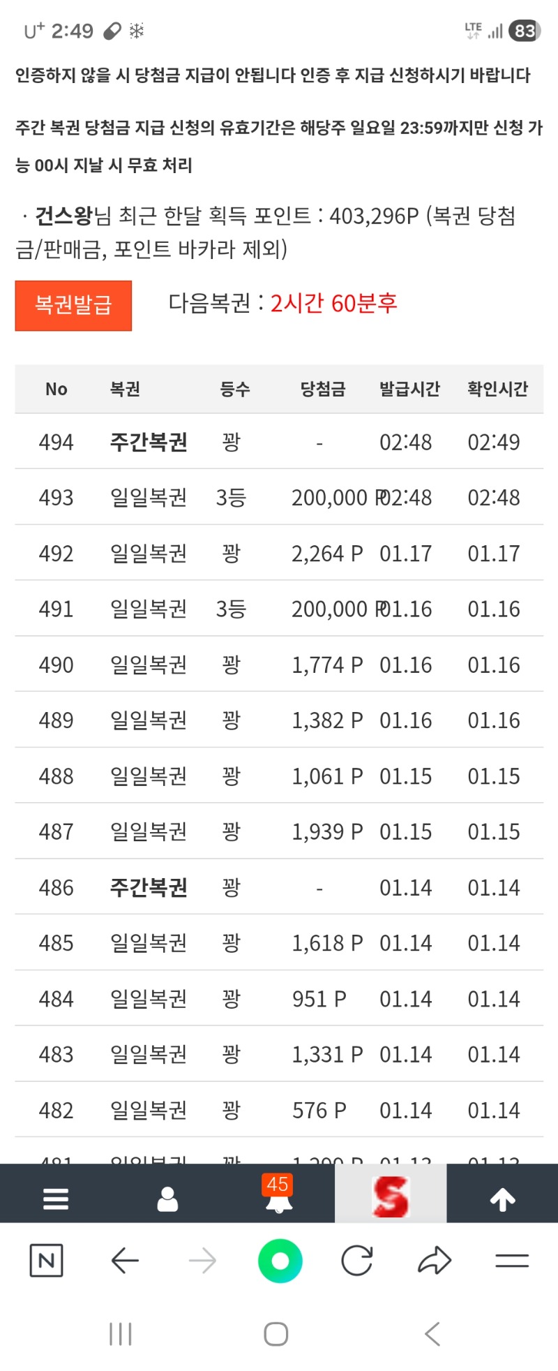 일복3등 건스왕 6 1 0 02:49:55 *기프티콘 바코드 노출 주의* <- 간사합니다 1 0 https://seulca1.com/bbs/board.php?bo_table=free&wr_id=3498494 Author 1 0 Lv.9 건스왕 9 6,085,526 (52%) 건스왕님 보유 포인트 : P 236,385 +6 01.19 일복3등 +6 01.16 일복3등 +2 01.14 오늘 무지 춥네요 +31 01.14 다시한번 +29 01.14 깡치기후 사망1