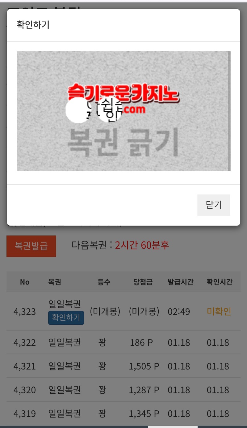 일복 꽝 나왔어여 ~~~!! 우니25 2 0 0 02:51:46 *기프티콘 바코드 노출 주의* <- 새벽시간 복권 한번 긁고 ~~ 0 0 https://seulca1.com/bbs/board.php?bo_table=free&wr_id=3498498 Author 11 5 Lv.17 우니25 17 98,133,283 (93%) 우니25님 보유 포인트 : P 3,925,330 +2 01.19 일복 꽝 나왔어여 ~~~!! +3 01.19 올림푸스 176배~ +9 01.19 올림푸스 114배~ +4 01.19 올림푸스 126배~ +14 01.19 바카라 내추럴9 곱하기 승~~!!