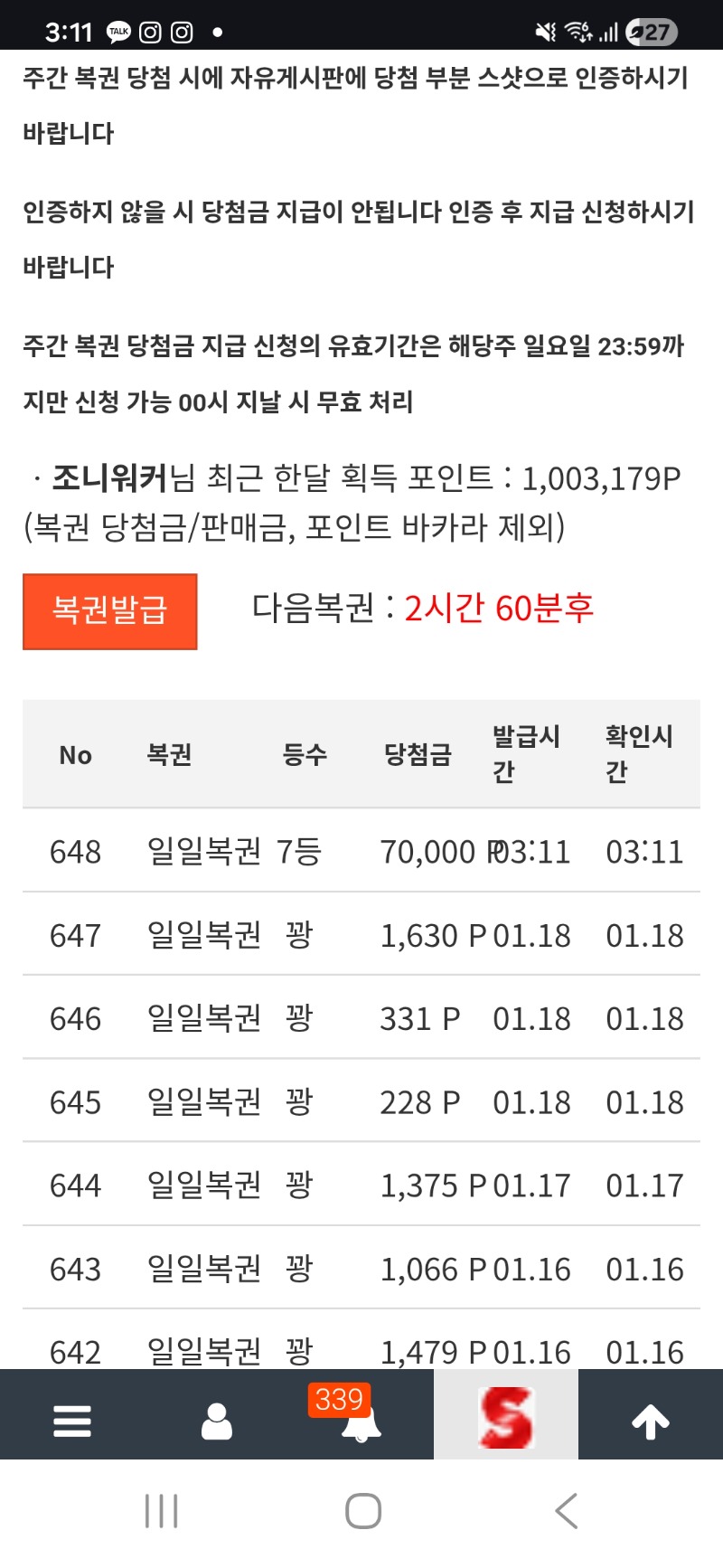 일복7등당첨 조니워커 6 1 0 03:12:24 *기프티콘 바코드 노출 주의* <- 1 0 https://seulca1.com/bbs/board.php?bo_table=free&wr_id=3498516 Author 0 0 Lv.9 조니워커 9 6,010,627 (50%) 조니워커님 보유 포인트 : P 95,239 +6 01.19 일복7등당첨 +1 01.18 [비밀글] 포인트교환신청합니다 01.18 굿모닝 입니다~ +1 01.17 맛저하세요 01.17 출석합니다
