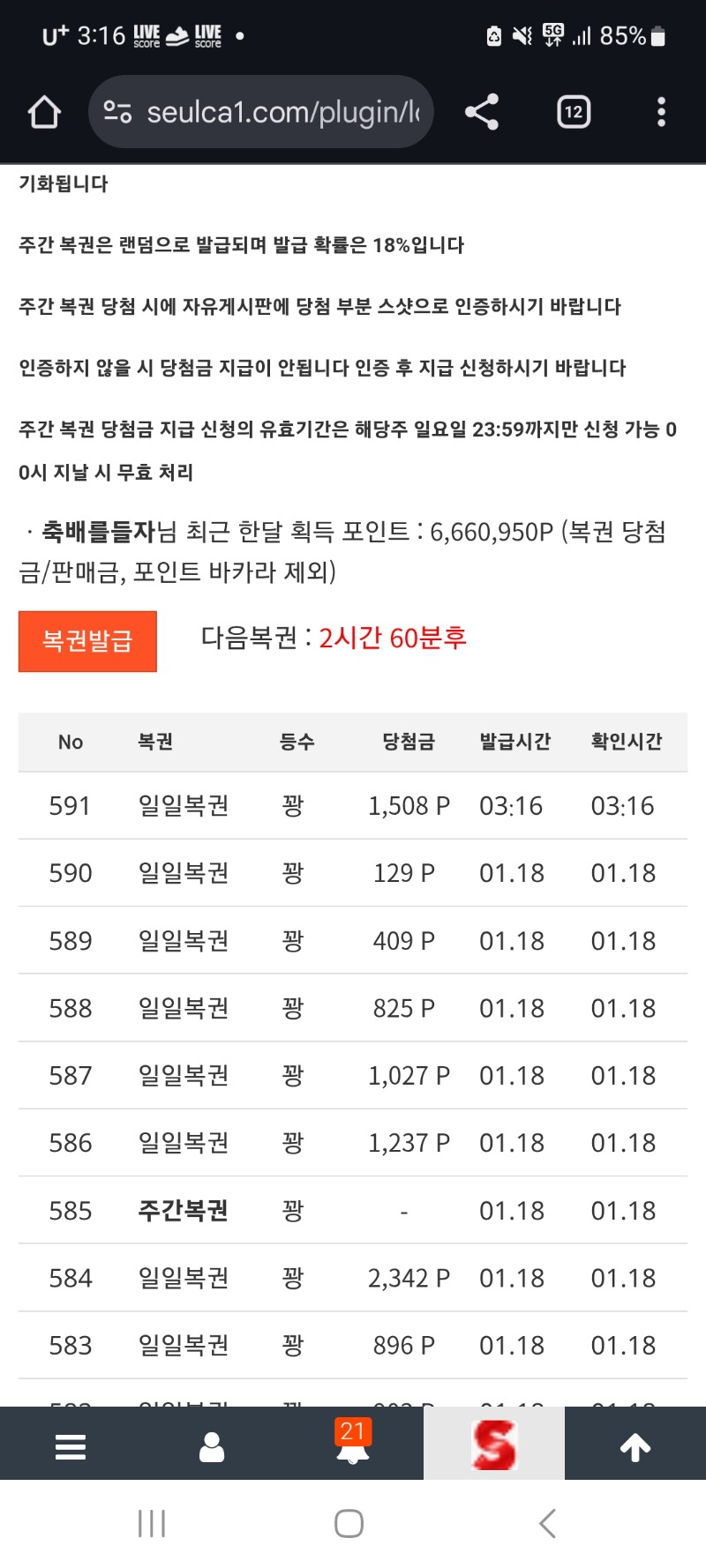 일복 꽝이야 축배를들자 2 0 0 03:17:25 *기프티콘 바코드 노출 주의* <- 꽝꽝 0 0 https://seulca1.com/bbs/board.php?bo_table=free&wr_id=3498522 Author 2 0 Lv.11 축배를들자 11 11,598,958 (53%) 축배를들자님 보유 포인트 : P 7,854,998 +2 01.19 일복 꽝이야 +2 01.19 굿밤되세요 수고하셨습니다 ~~^^ 01.19 출석체크 +1 01.18 다들 한주 고생하셨습니다 +3 01.18 슬카 간신히 이겻다