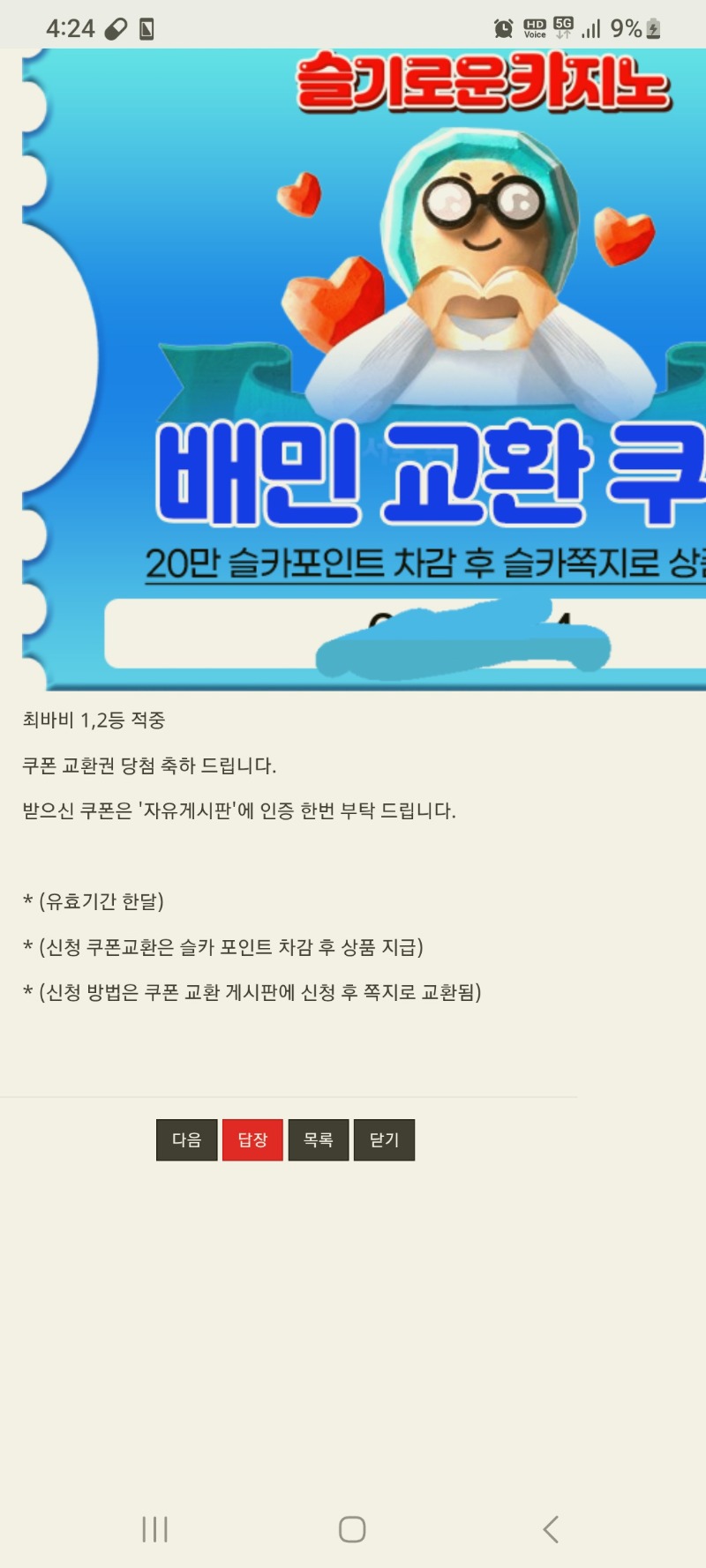 최바비동시적중 킹팰릭스 3 0 0 04:25:24 *기프티콘 바코드 노출 주의* <- 나이따 0 0 https://seulca1.com/bbs/board.php?bo_table=free&wr_id=3498574 Author 2 0 Lv.12 킹팰릭스 12 13,972,399 (19%) 킹팰릭스님 보유 포인트 : P 1,252,659 +1 01.19 [비밀글] 배민교환신청 +3 01.19 최바비동시적중 +2 01.17 저녁챙겨먹어요 +1 01.16 [비밀글] 4등교환신청합니다 +1 01.16 [비밀글] 우루스 200만포 교환