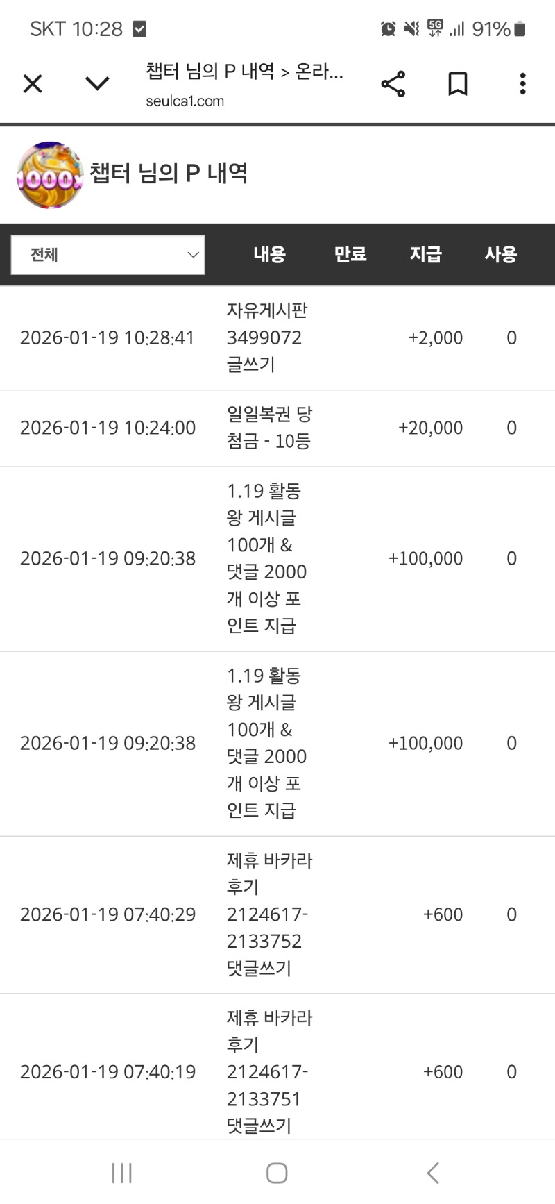 활동포 감사합니다 챕터 0 0 0 11:14:06 *기프티콘 바코드 노출 주의* <- 이번주도 화이팅입니다 ~^^ 0 0 https://seulca1.com/bbs/board.php?bo_table=free&wr_id=3499156 Author 9 5 Lv.16 챕터 16 64,077,028 (70%) 챕터님 보유 포인트 : P 7,200 01.19 맛점하세요 ^^ 01.19 활동포 감사합니다 +2 01.19 일복 10등 당첨 +3 01.19 굿모닝입니다 01.19 후기글 숙제 완료했으니 취침하러가겠습니다