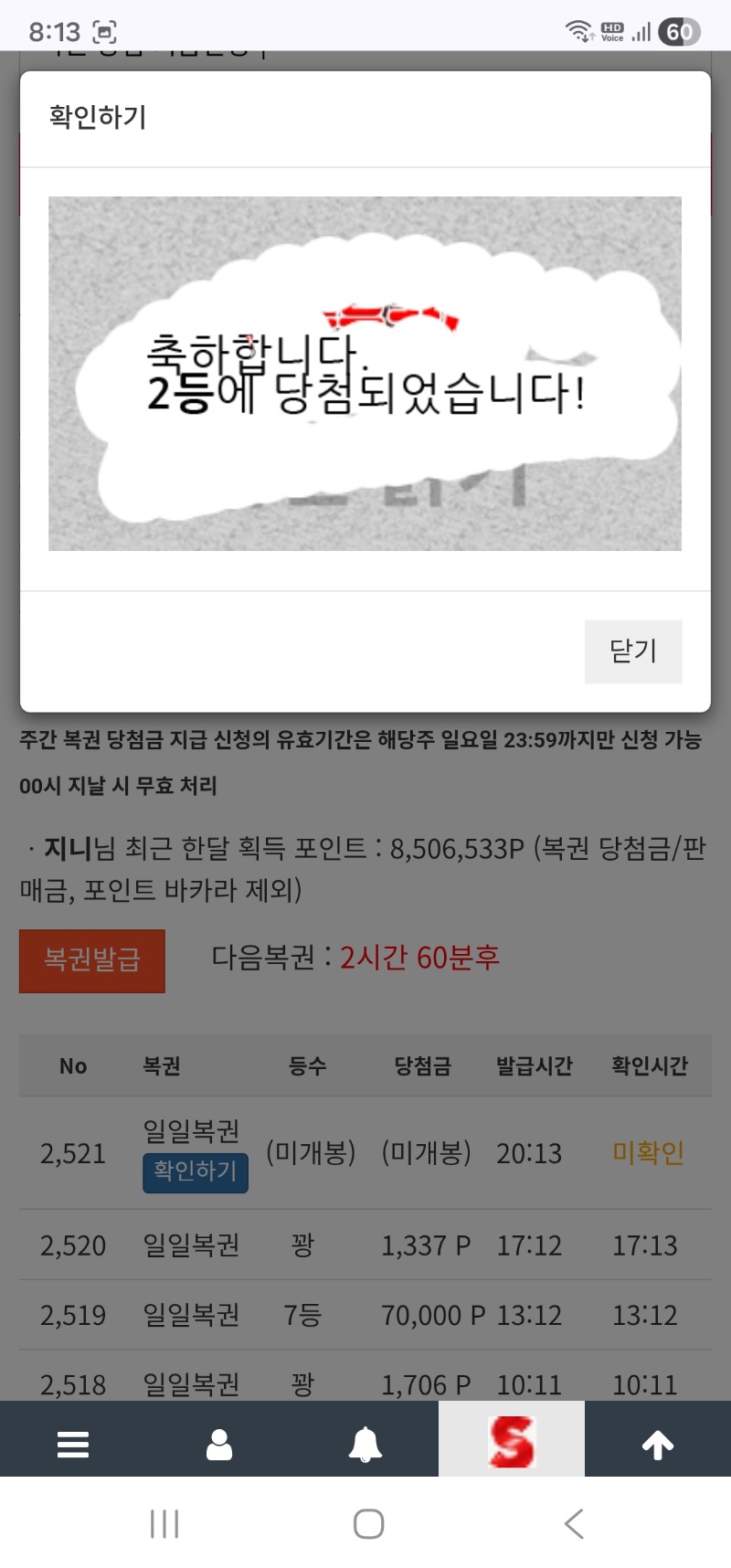 일복이 2등 당첨 되었습니다 지니 13 1 0 20:14:06 *기프티콘 바코드 노출 주의* <- 1 0 https://seulca1.com/bbs/board.php?bo_table=free&wr_id=3500565 Author 5 2 Lv.15 지니 15 46,543,427 (82%) 지니님 보유 포인트 : P 4,017,783 +13 01.19 일복이 2등 당첨 되었습니다 +2 01.19 어!!사자 방송 4분 지각이네!!! +8 01.19 토끼 방송 스타트~ +1 01.19 포교금 깡치기 실패 01.19 한도니 방송중입니다