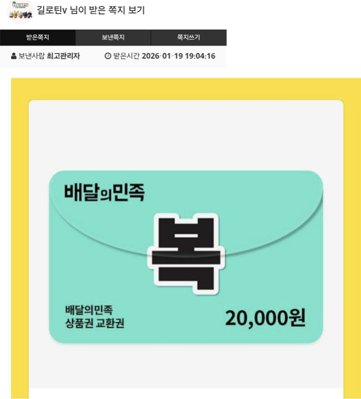 가족방 쿠폰 이제야 쓰네요 길로틴v 2 0 0 21:26:33 *기프티콘 바코드 노출 주의* <- 0 0 https://seulca1.com/bbs/board.php?bo_table=free&wr_id=3500799 Author 8 1 Lv.11 길로틴v 11 12,819,420 (93%) 길로틴v님 보유 포인트 : P 214,770 +2 01.19 가족방 쿠폰 이제야 쓰네요 +4 01.19 호넷 배민돌발 +3 01.19 한가한 월요일 +1 01.19 [비밀글] 교환요 +1 01.19 [비밀글] 교환요