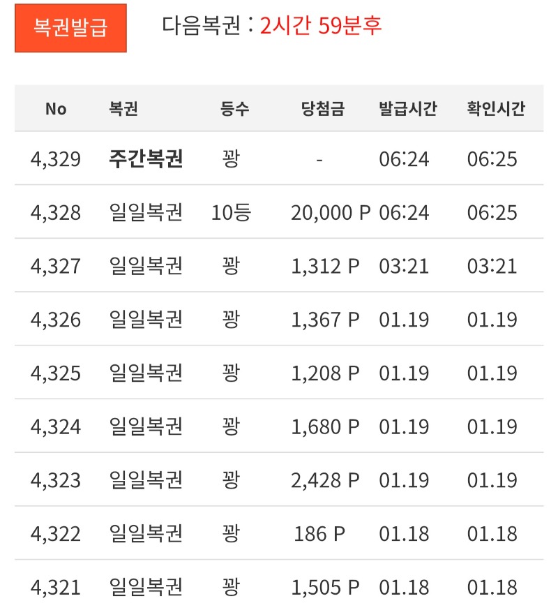 일복 10등 당첨 되었습니다 ~!!^^ 우니25 2 0 0 06:26:31 *기프티콘 바코드 노출 주의* <- 주복 한장 나왔어여 아쉽네요 ~~!! 일복 10등 감사합니다 ㅅㅅㅅㅅㅅ 0 0 https://seulca1.com/bbs/board.php?bo_table=free&wr_id=3501587 Author 11 5 Lv.17 우니25 17 98,362,357 (94%) 우니25님 보유 포인트 : P 4,886,923 01.20 문~~~!!^^ +7 01.20 사이언 314배~ +2 01.20 일복 10등 당첨 되었습니다 ~!!^^ +7 01.20 사이언 149배~ +19 01.20 사이언 236배~