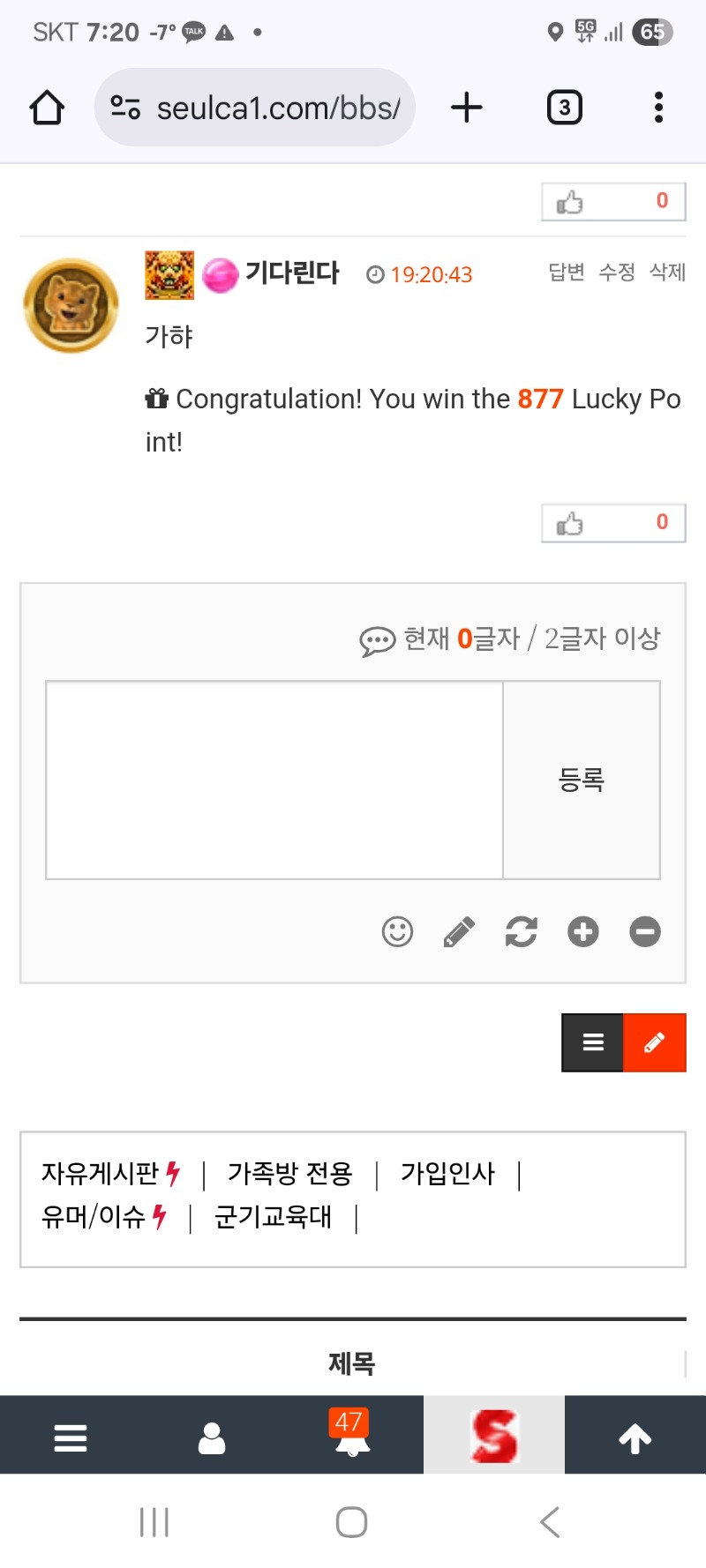 럭포 당첨 기다린다 2 0 0 19:21:45 *기프티콘 바코드 노출 주의* <- 좋쿠나 0 0 https://seulca1.com/bbs/board.php?bo_table=free&wr_id=3503229 Author 13 3 Lv.15 기다린다 15 38,441,690 (42%) 기다린다님 보유 포인트 : P 683,603 +2 01.20 럭포 당첨 +3 01.20 맛저 하세요 +1 01.20 좋은 아침입니다 +13 01.20 블랙잭 딜러버스트 +13 01.20 블랙잭 퍼팩페어로 승