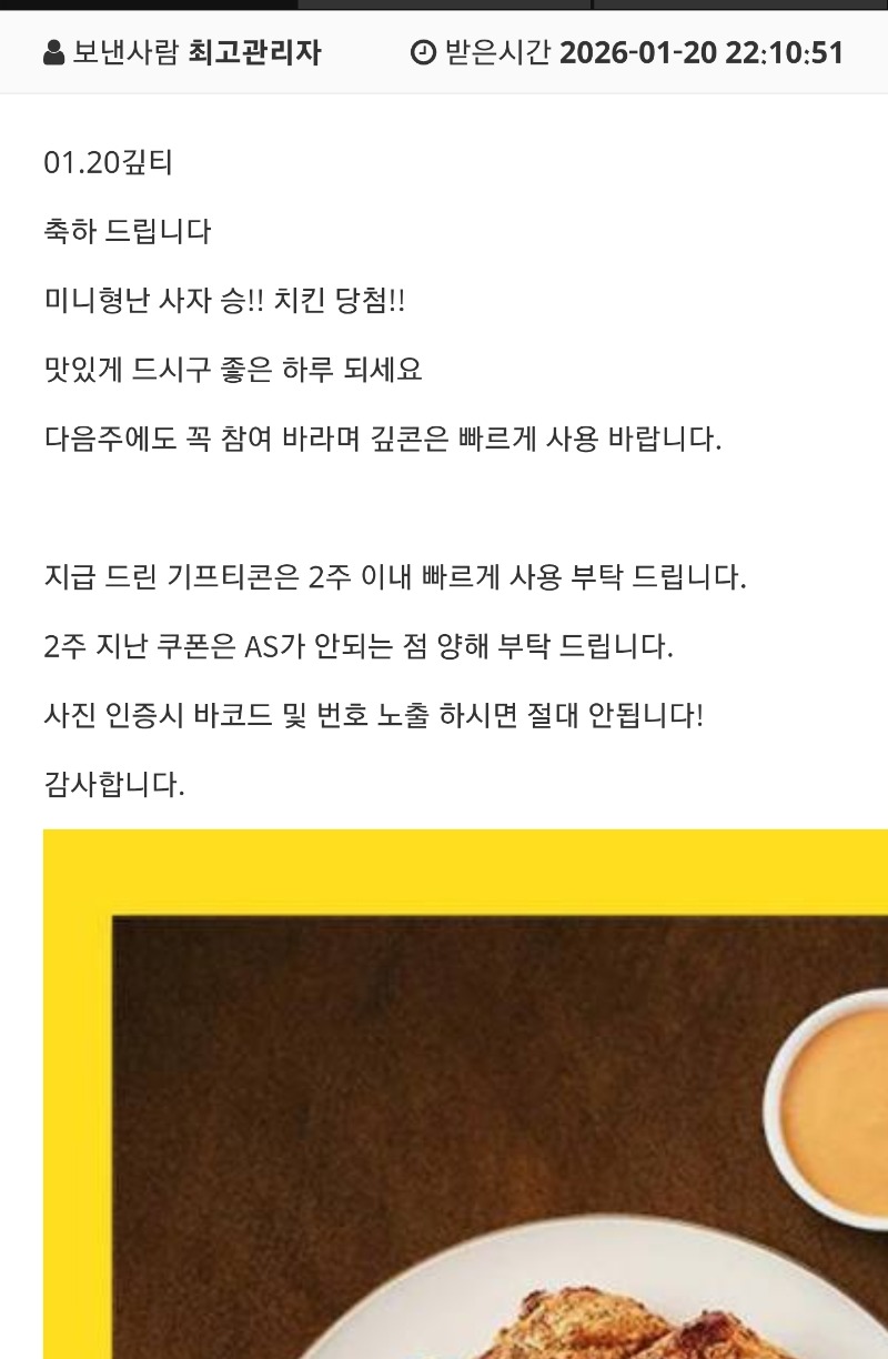 미형승 치킨 시티 10 0 0 01.20 23:36 *기프티콘 바코드 노출 주의* <- 감사합니다~ 0 0 https://seulca1.com/bbs/board.php?bo_table=free&wr_id=3503830 Author 0 0 Lv.15 시티 15 49,309,628 (96%) 시티님 보유 포인트 : P 300 +4 01.21 굿밤들되세요 +10 01.21 멀린1492배 +3 01.21 토라메360배 +4 01.21 토라메108배 +8 01.21 토라메499배
